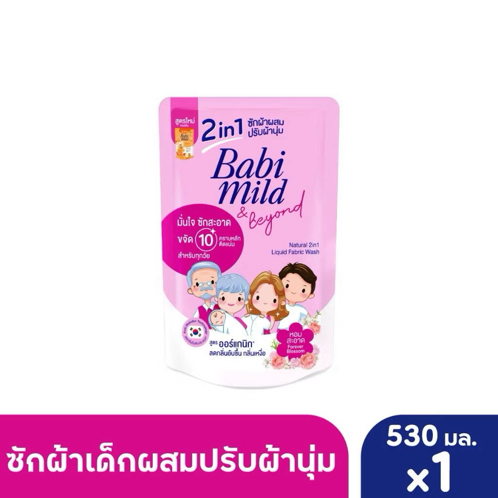 ✅1 ถุง ✅BabiMildเบบี้มายด์ ผลิตภัณฑ์ซักผ้าเด็กผสมปรับผ้านุ่ม ถุงเติม530มล.มีกลิ่นให้เลือก