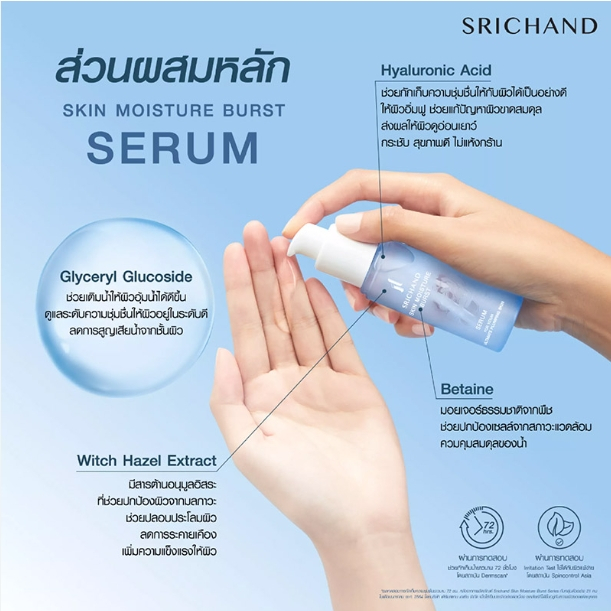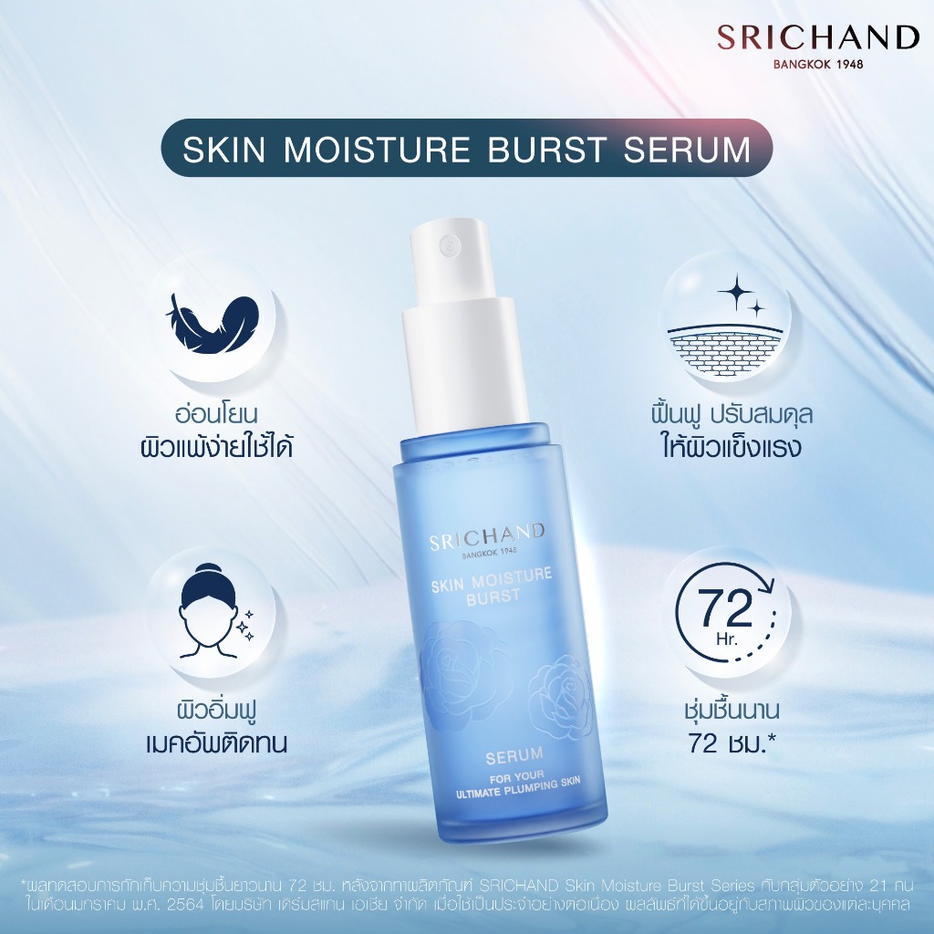 Srichand ศรีจันทร์ สกิน มอยส์เจอร์ เบิร์ส เซรั่ม 50 มล. ผิวดูอิ่มฟู เนื้อบางเบา ผิวเรียบเนียน