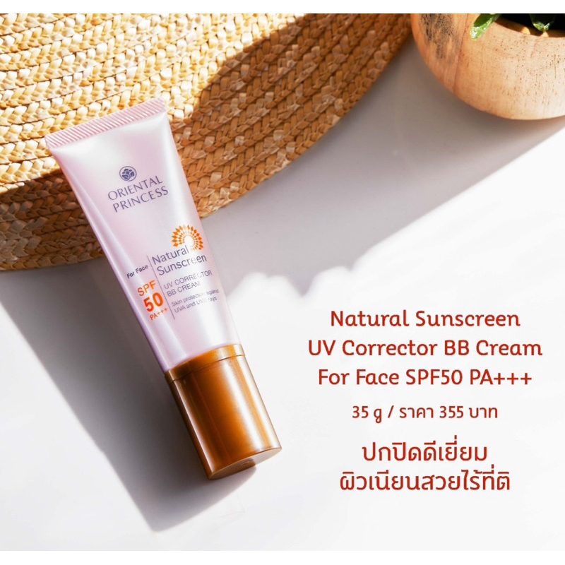 oriental Natural Sunscreen UV Corrector BB Cream for Face SPF 50 PA+++ 35 g. กันแดด ผสม บีบี BB+ที่ทาตาฟองน้ำ 1 ชิ้น 💓