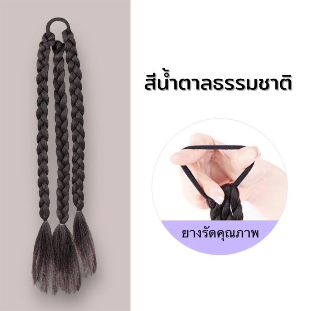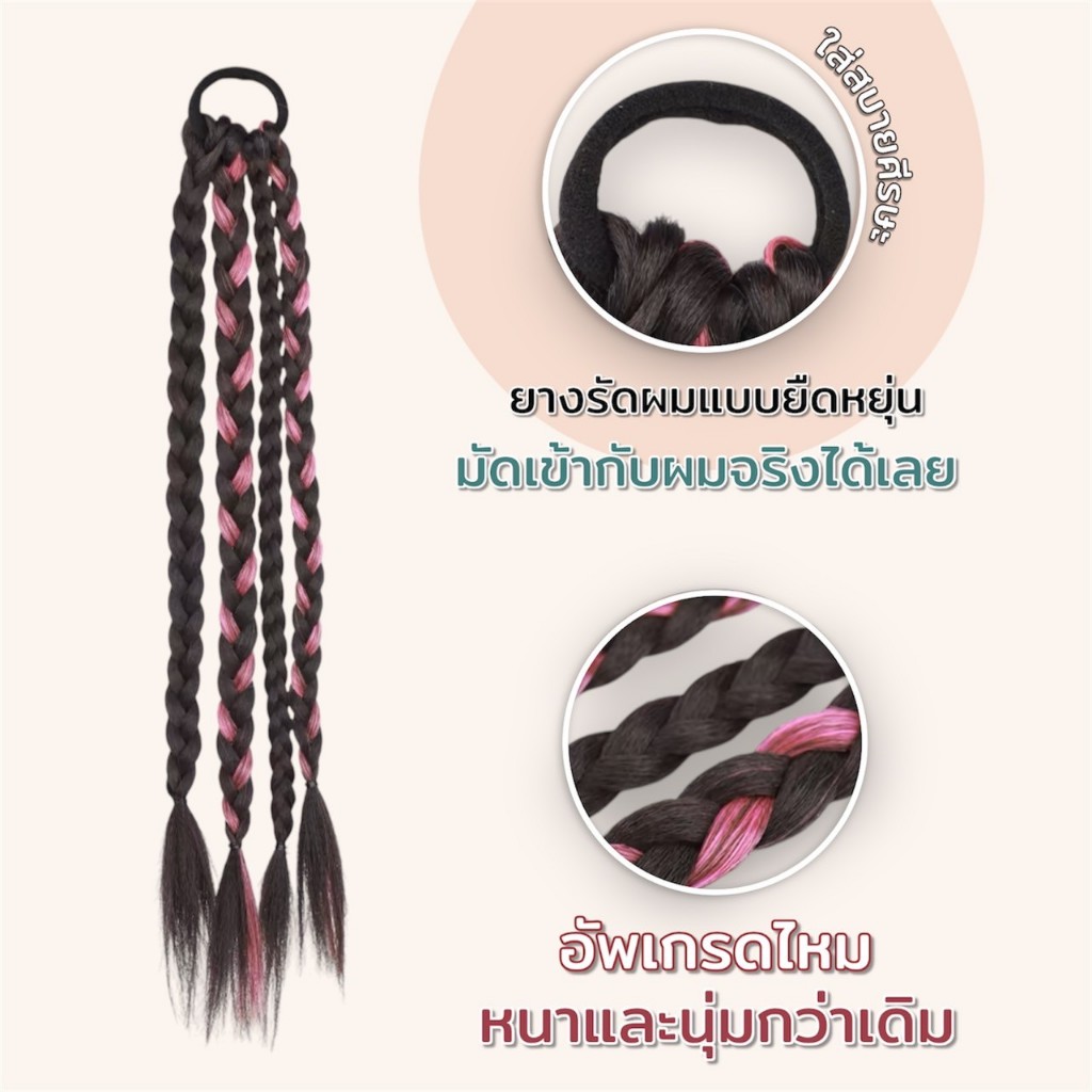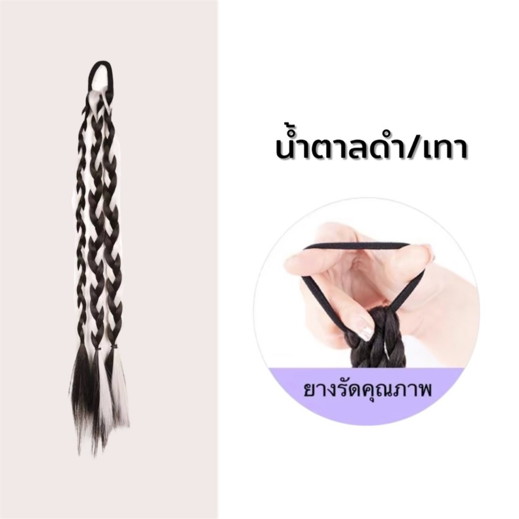 แฮร์พีชเปียถักไฮไลท์ 3 ช่อ เปียถัก แบบสำเร็จรูป ยางรัดผมเปีย สีเดี่ยว/ทูโทน ยาว 45-50 cm สวยทุกสี