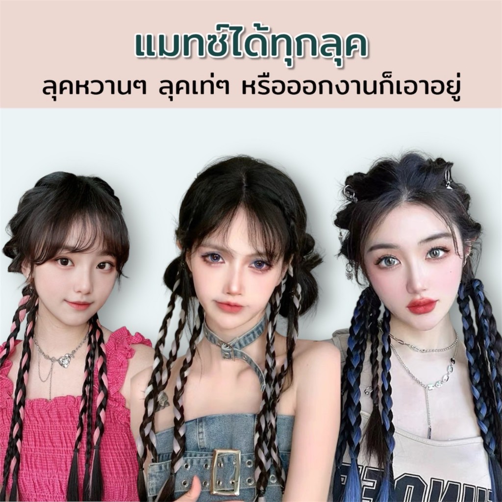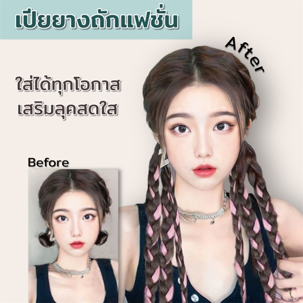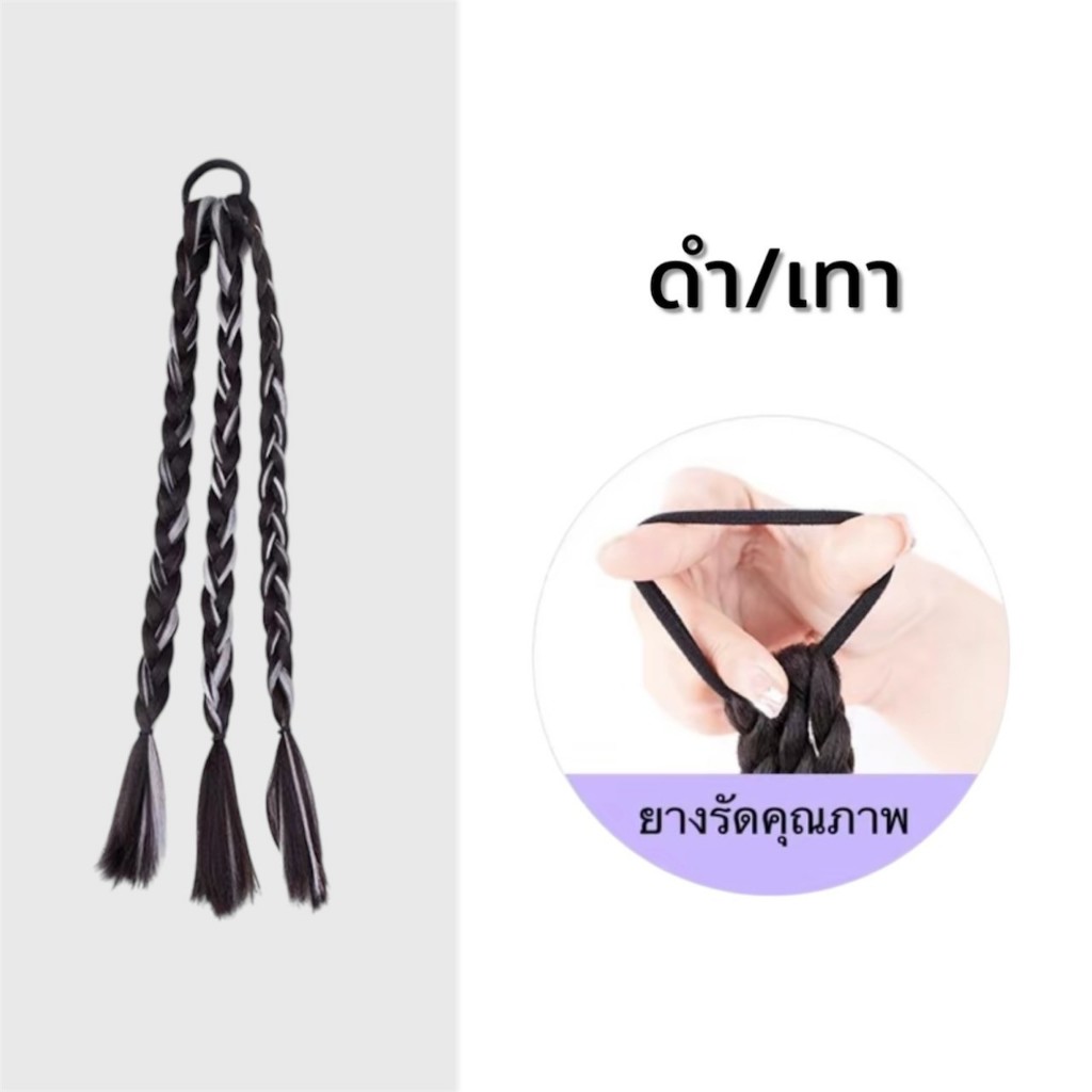 แฮร์พีชเปียถักไฮไลท์ 3 ช่อ เปียถัก แบบสำเร็จรูป ยางรัดผมเปีย สีเดี่ยว/ทูโทน ยาว 45-50 cm สวยทุกสี