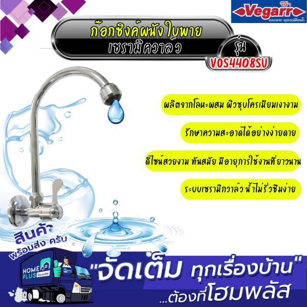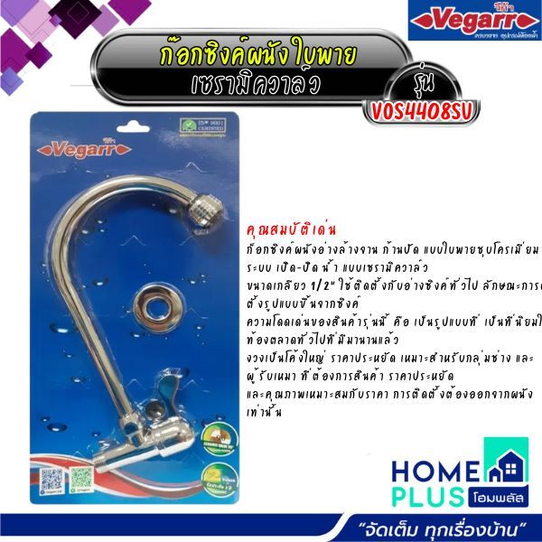 VEGARR ก๊อกซิงค์ผนัง ใบพาย เซรามิควาล์ว VOS4408SU