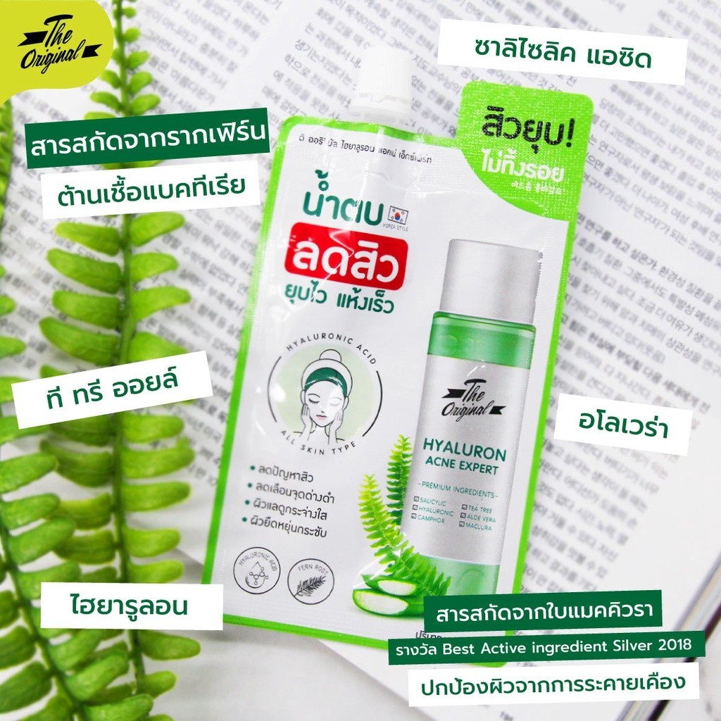 [1 กล่อง 6 ซอง] น้ำตบลดสิว สิวยุบไว ดิออริจินัล ผิวชุ่มชื้น น้ำตบใบเฟิร์น น้ำตบสิว The Original Hyaluron Acne Expert