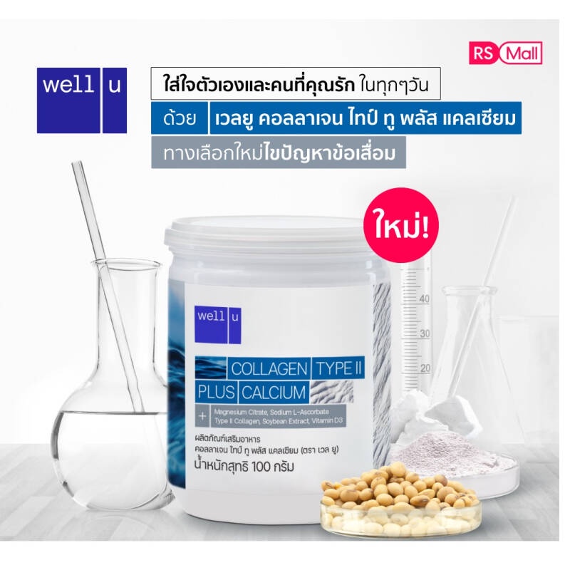 Well U Collagen Type II plus Calcium เวล ยู คอลลาเจน ไทป์ทู พลัส แคลเซียม (ขนาด 100 กรัม)พลัสสสสสส