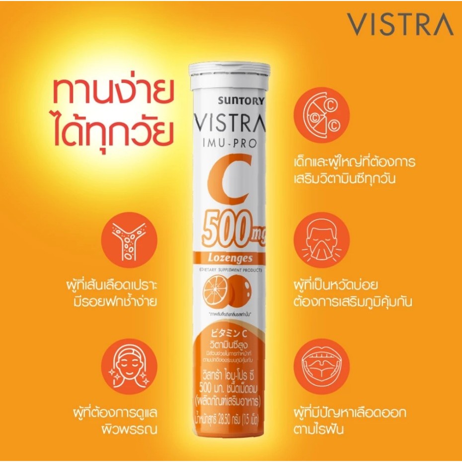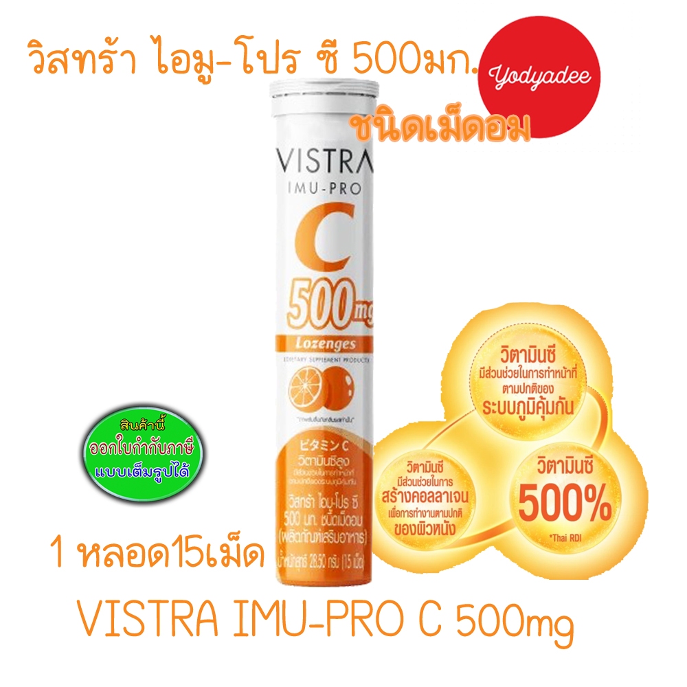 Vistra Imu-Pro C Lozenges วิสทร้า ไอมู-โปร ซี 500 มก. เม็ดอม [15 เม็ด] 83466 วิตามินซี ชนิดเม็ดอม Vitamin C วิตซี