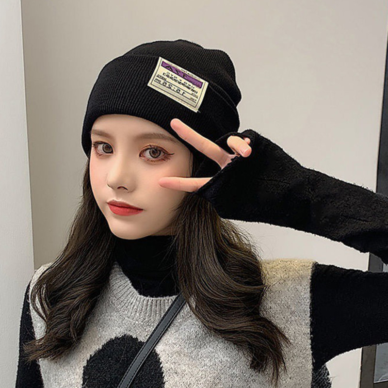 หมวกไหมพรมเป่าโถวแสดงใบหน้าขนาดเล็กอบอุ่นผู้ชายและผู้หญิงฤดูใบไม้ร่วงและฤดูหนาวน้ําสีดําถักหมวกหมวกเย็น