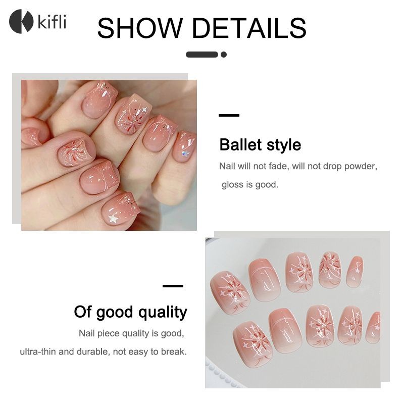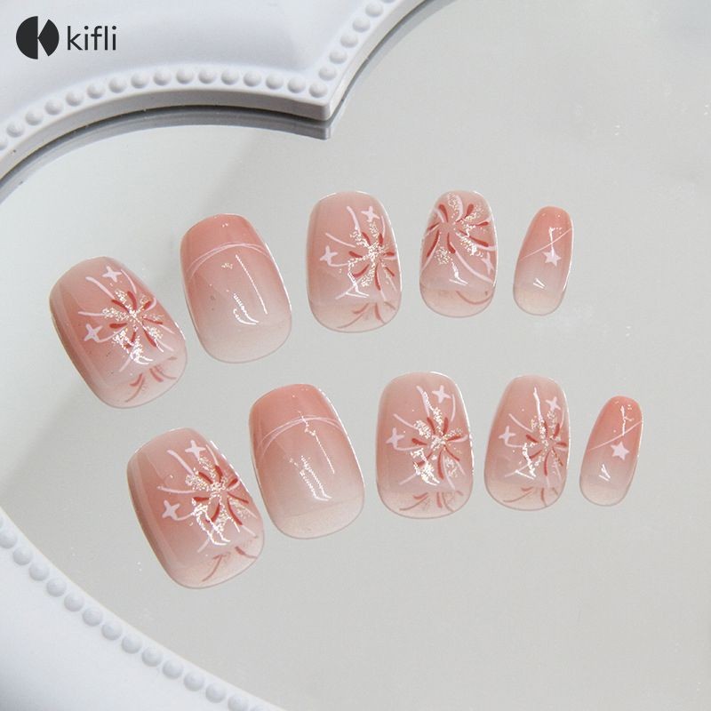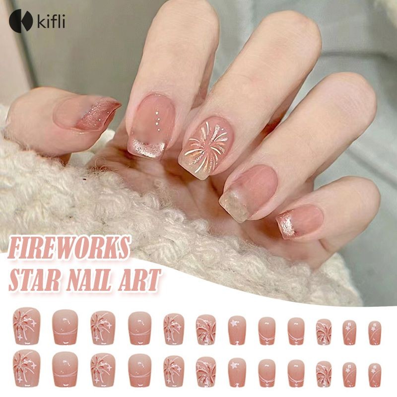 kifli.thBlusher Nails Fireworks Stars Press-on Nails บัลเล่ต์สไตล์ที่ถอดออกได้เล็บแพทช์-KI