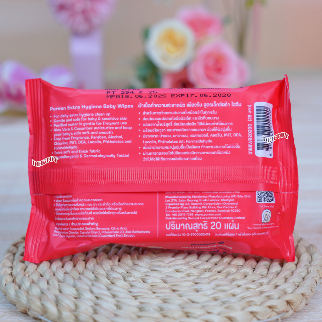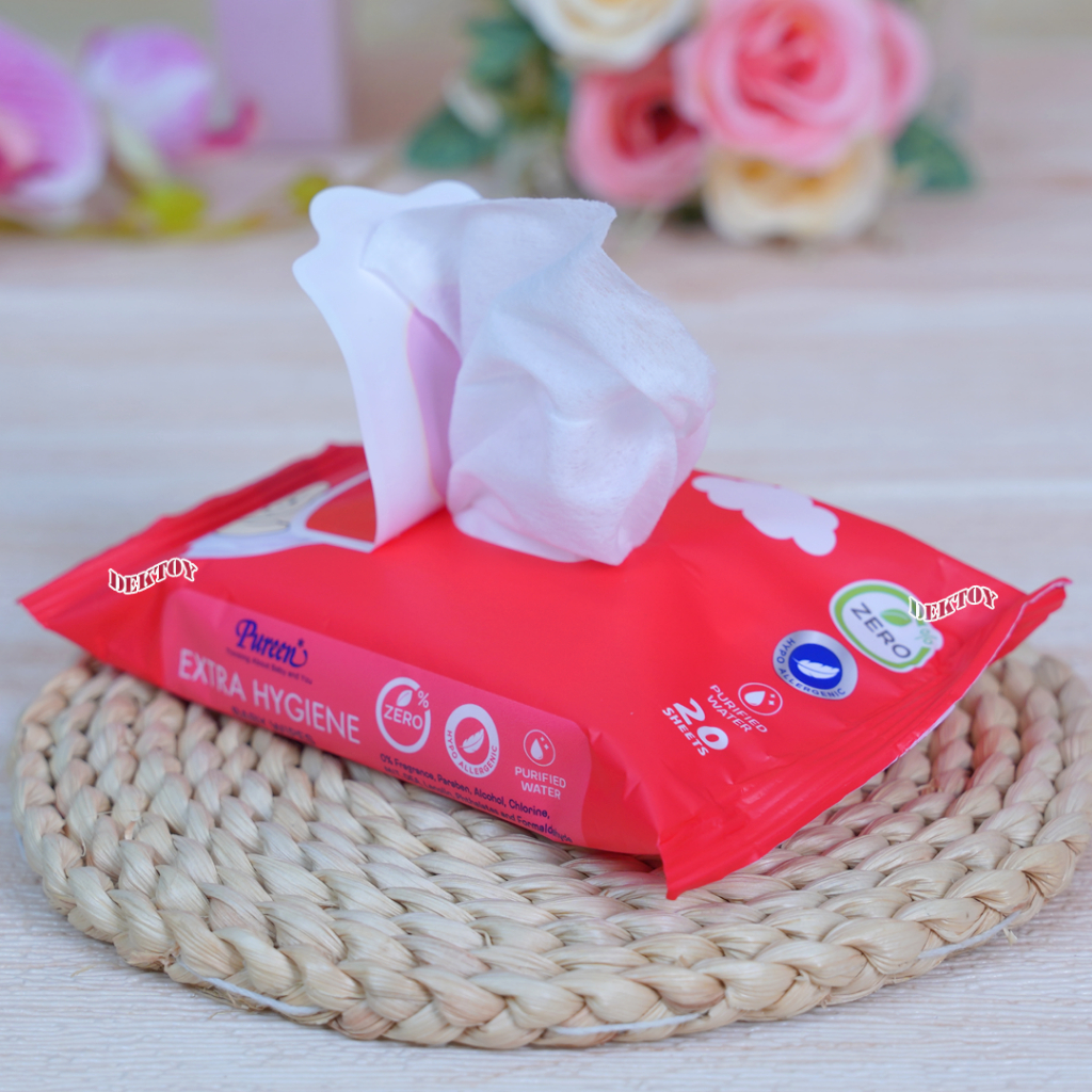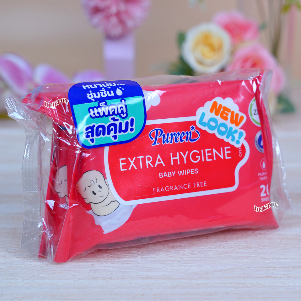6 ห่อ Pureen เพียวรีน ทิชชู่เปียก เบบี้ไวพส์ ผ้าเช็ดทำความสะอาดผิว สูตรเอ็กซ์ตร้า ไฮจีน 20 ชิ้น