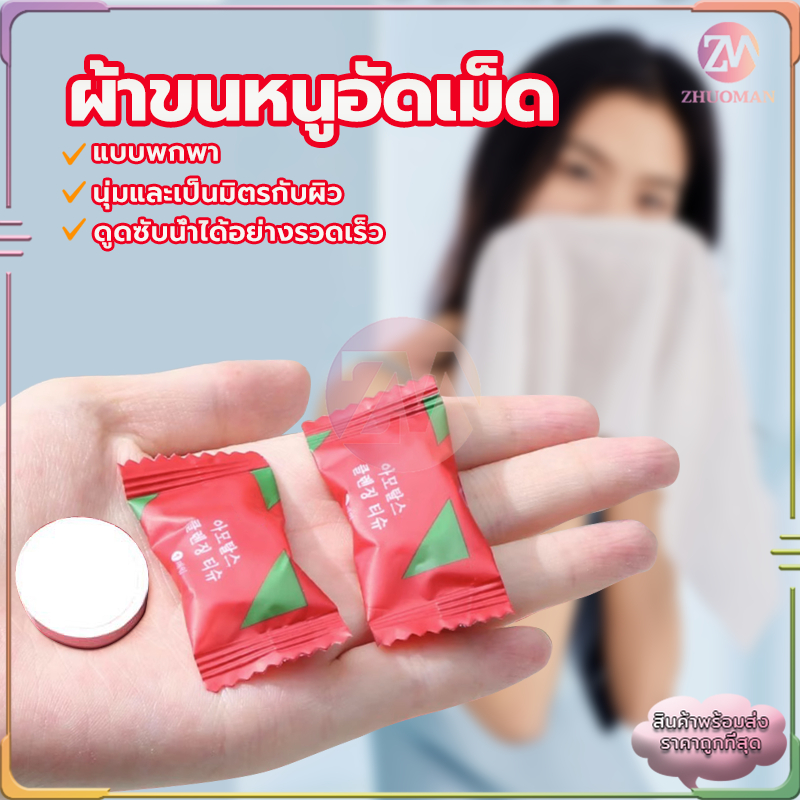 ผ้าขนหนูอัดเม็ด ผ้าอัดเม็ด ผ้าขนหนูอัด แบบใช้แล้วทิ้ง ขนาด 20x22 ซม.จากผ้า cotton 100% คุณภาพดี ผ้าเหนียวไม่เป็นขลุย