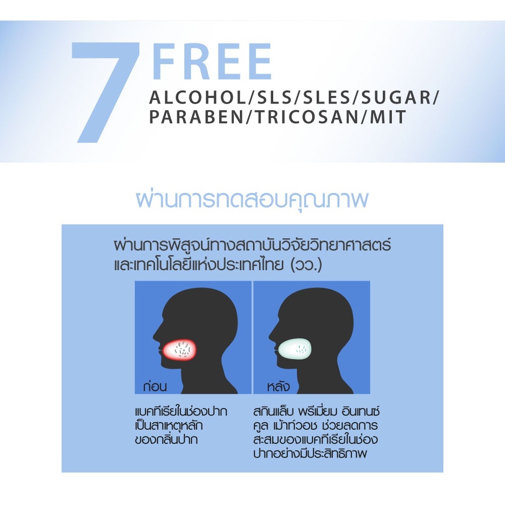 สีฟ้า Skynlab【กล่อง/6ซอง】น้ำยาบ้วนปาก【สูตรเย็นX2】Premium intense cool mouthwash 15mlx6ซอง #Mwblue2