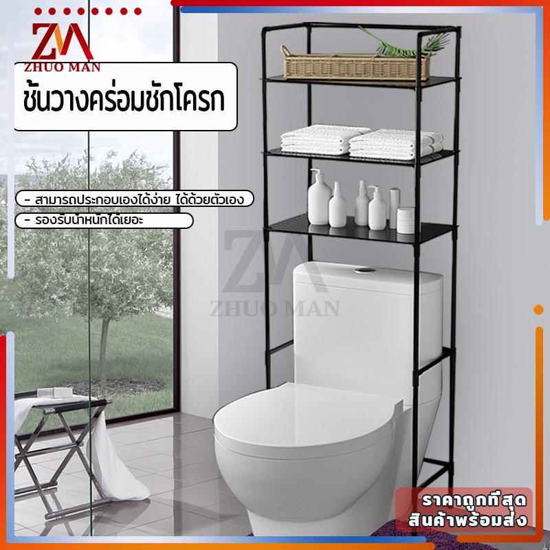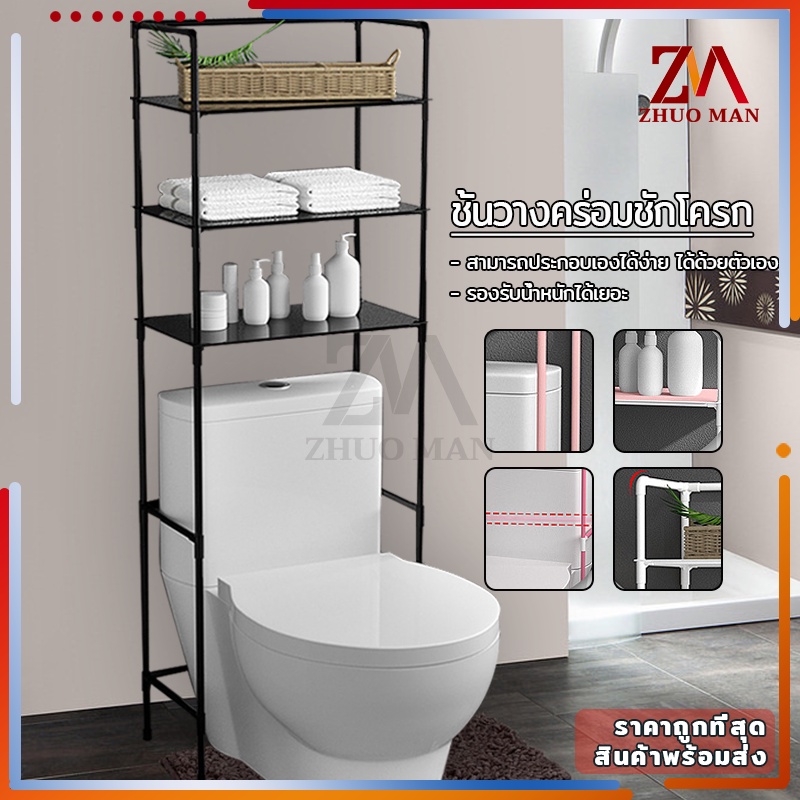 ชั้นวางของในห้องน้ำ ชั้นวางคร่อมชักโครก ที่วางของในห้องน้ํา ชั้นวางของ 3ชั้น อเนกประสงค์ ประกอบง่าย ที่วางในห้องน้ํา