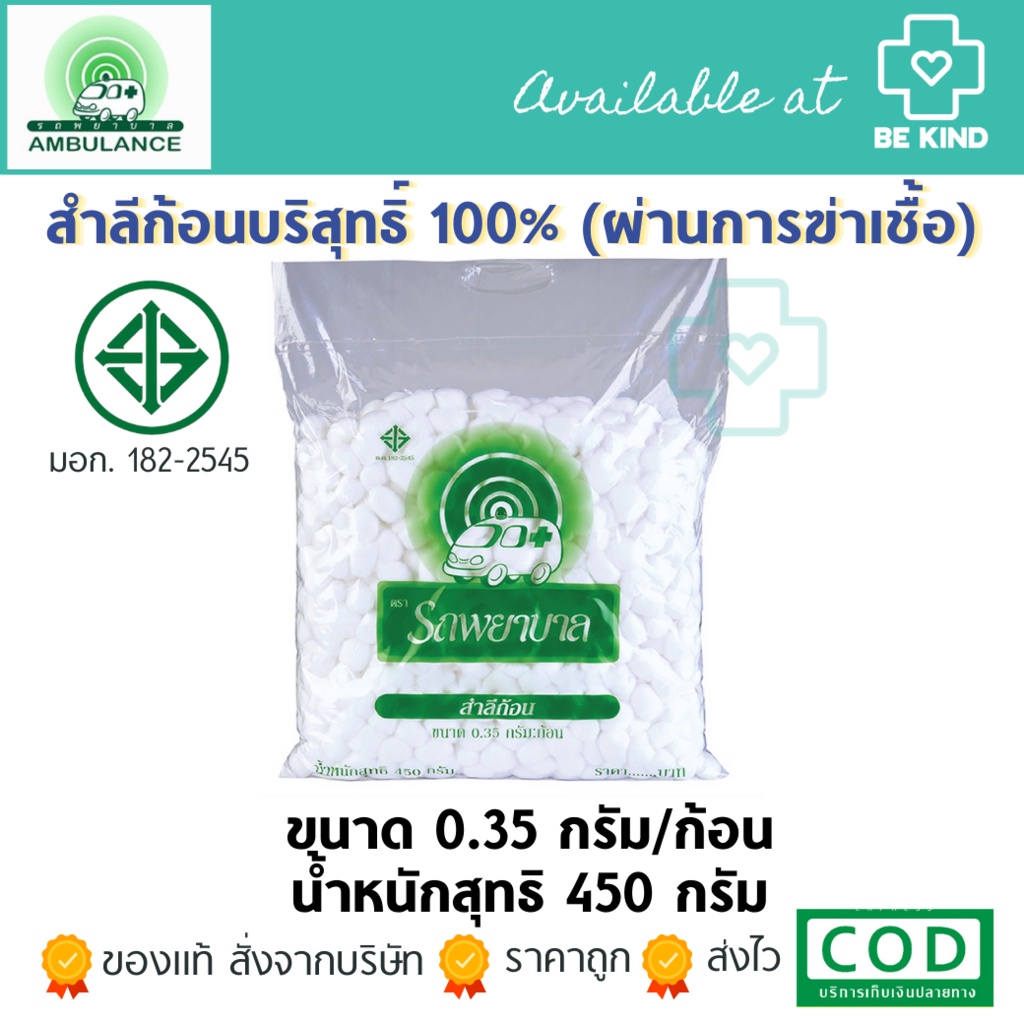 สำลีก้อนเล็ก ตรารถพยาบาล ห่อใหญ่ 0.35 กรัม/ก้อน (น้ำหนักรวมสุทธิ450กรัม)