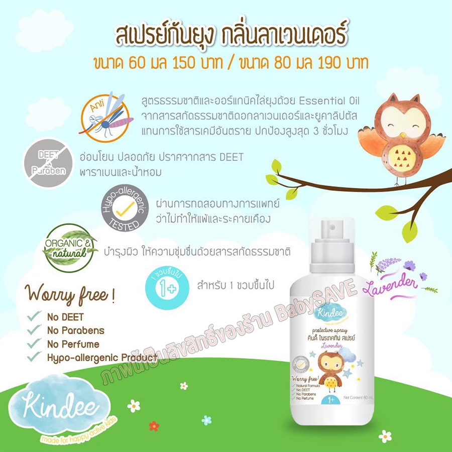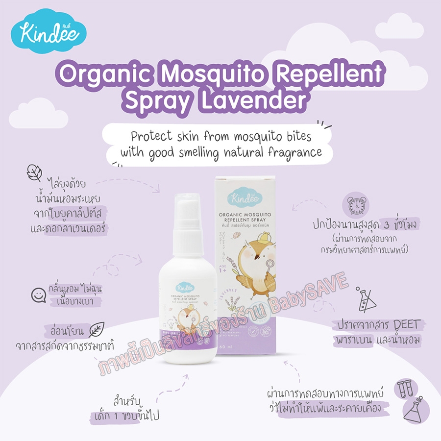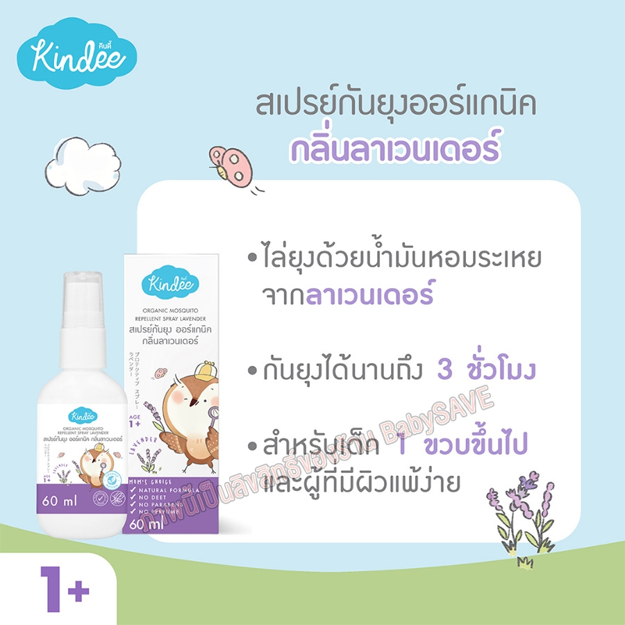 Kindee Spray สเปรย์กันยุง ออร์แกนิค (1+) กลิ่นลาเวนเดอร์ ขนาด 15 ml.