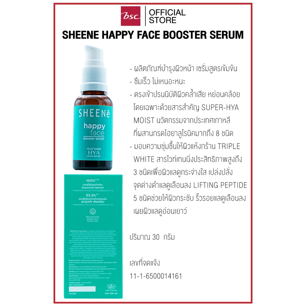 SHEENE HAPPY FACE BOOSTER SERUM ผลิตภัณฑ์บำรุงผิวหน้า เซรั่มสูตรเข้มข้น ซึมเร็ว ไม่เหนอะหนะ ตรงเข้าปรนนิบัติผิวคล้ำเสีย