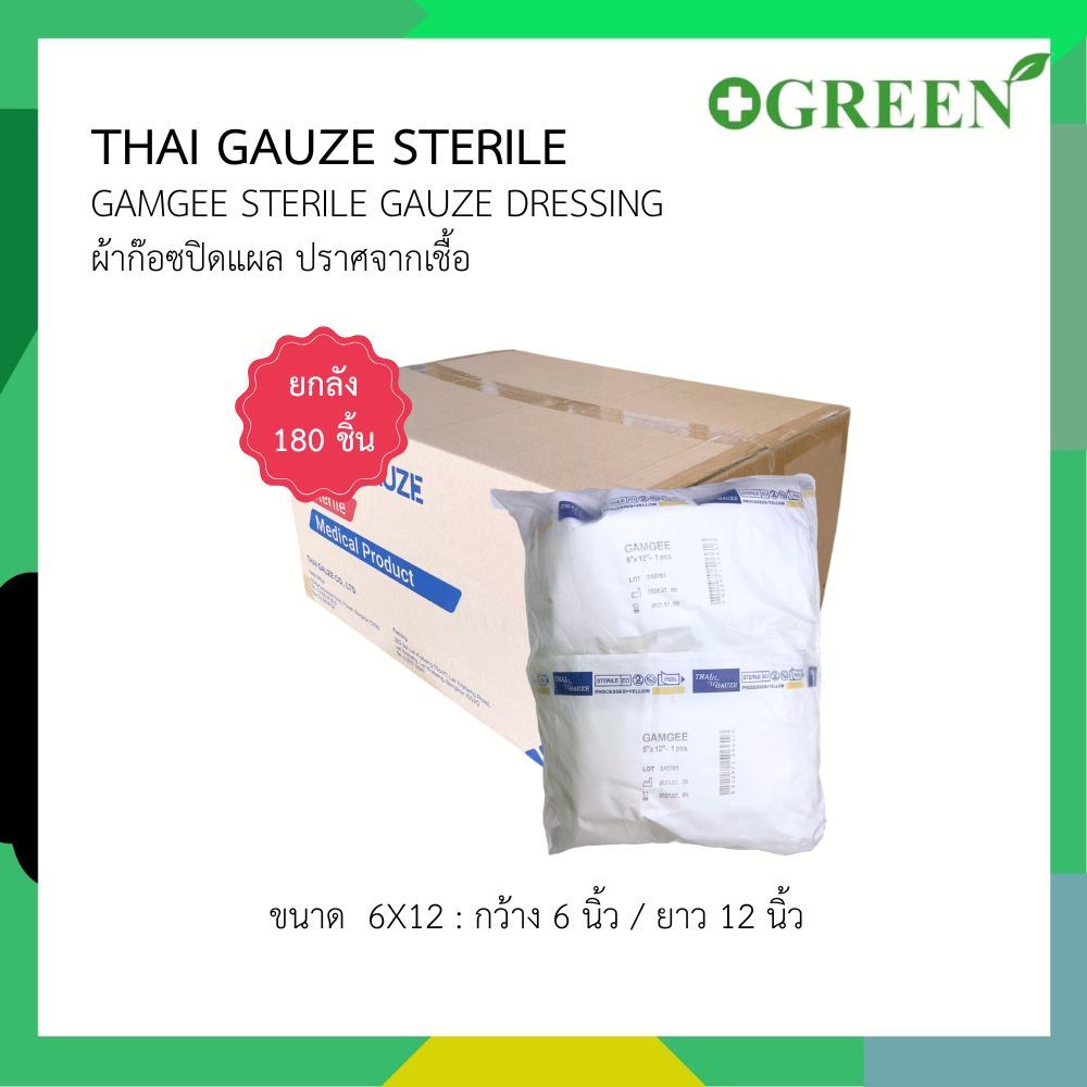 Thai gauze sterile Gamgee ขนาด 6x12 [1 ลัง บรรจุ 180 ซอง] (6609)