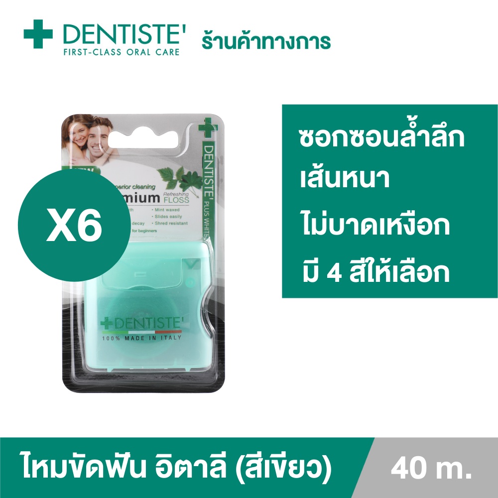 Dentiste' Dental Floss Italy 40 m.(ฺGreen) เดนทิสเต้ ไหมขัดฟัน ทำความสะอาดคราบพลัค จับง่ายถนัดมือ เดนทิสเต้ (แพ็ค 6ชิ้น)