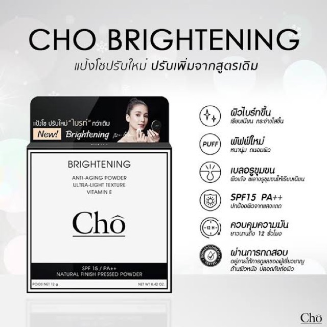 แป้ง cho Cho Brightening Anti Aging Powder โช ไบรท์เทนนิ่ง แอนตี้ เอจจิ้ง พาวเดอร์ 12g