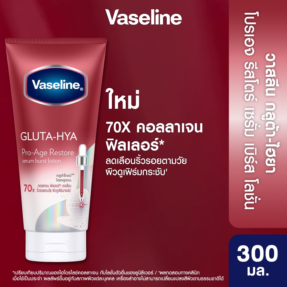 วาสลีน เฮลธี้ ไบรท์ กลูต้า ไฮยา เซรั่ม เบิสท์ โลชั่น โปร-เอจ รีสโตร์ 300 มล. ผิวดูเฟิร์มกระชับ ลดเลือนจุดด่างดำตามวัย