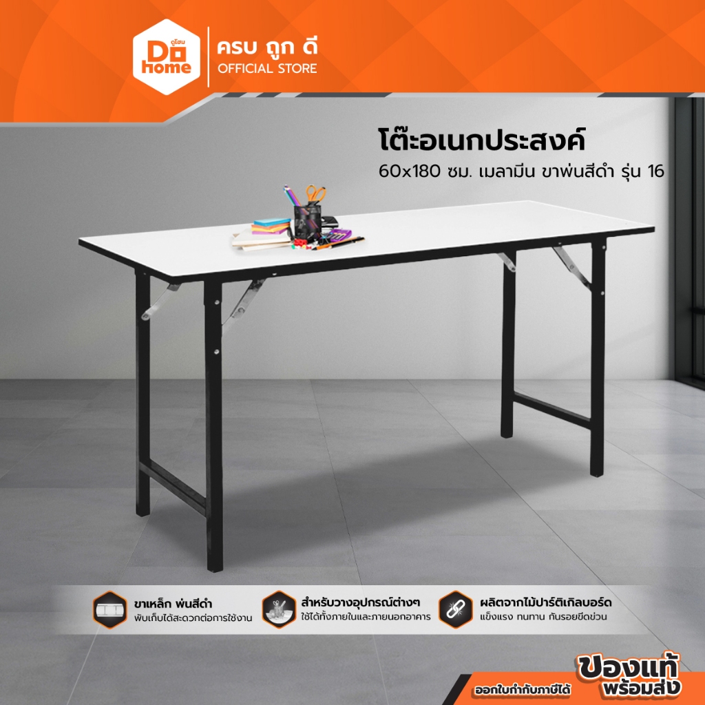 โต๊ะอเนกประสงค์ เมลามีน 60x180 ซม. รุ่น 16 ขาพ่นสีดำ |AB|