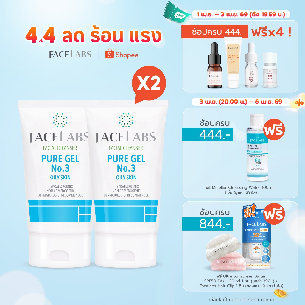 (แพ็คคู่) FACELABS Facial Cleanser Pure Gel No.3 เจลล้างหน้าสูตรผิวมัน 120 ml.
