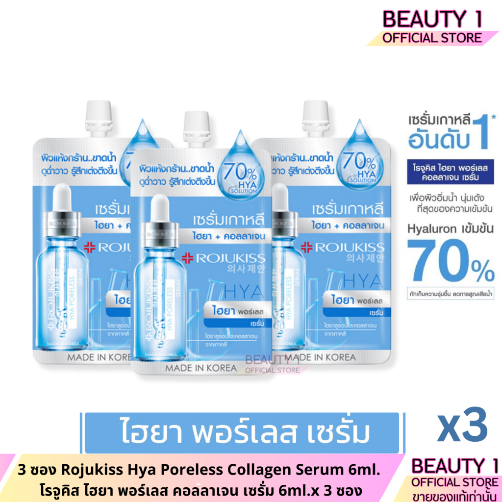 3 ซอง Rojukiss Hya Poreless Collagen Serum 6ml โรจูคิส ไฮยา พอร์เลส คอลลาเจน เซรั่ม 6ml.x 3 ซอง