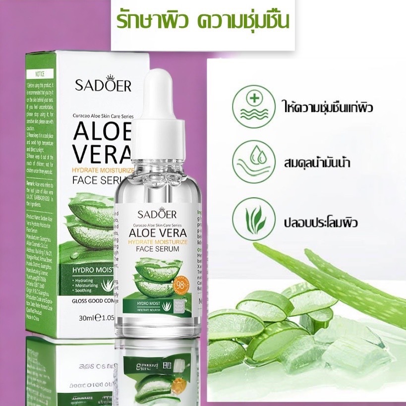 เซรั่ม SADOER เอสเซ้นส์ เซรั่มหน้า สารสกัดจาก ว่านหางจระเข้สำหรับผิวแพ้ง่าย ขาวใส 30 ml.
