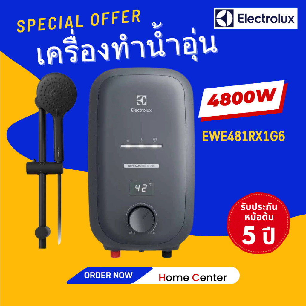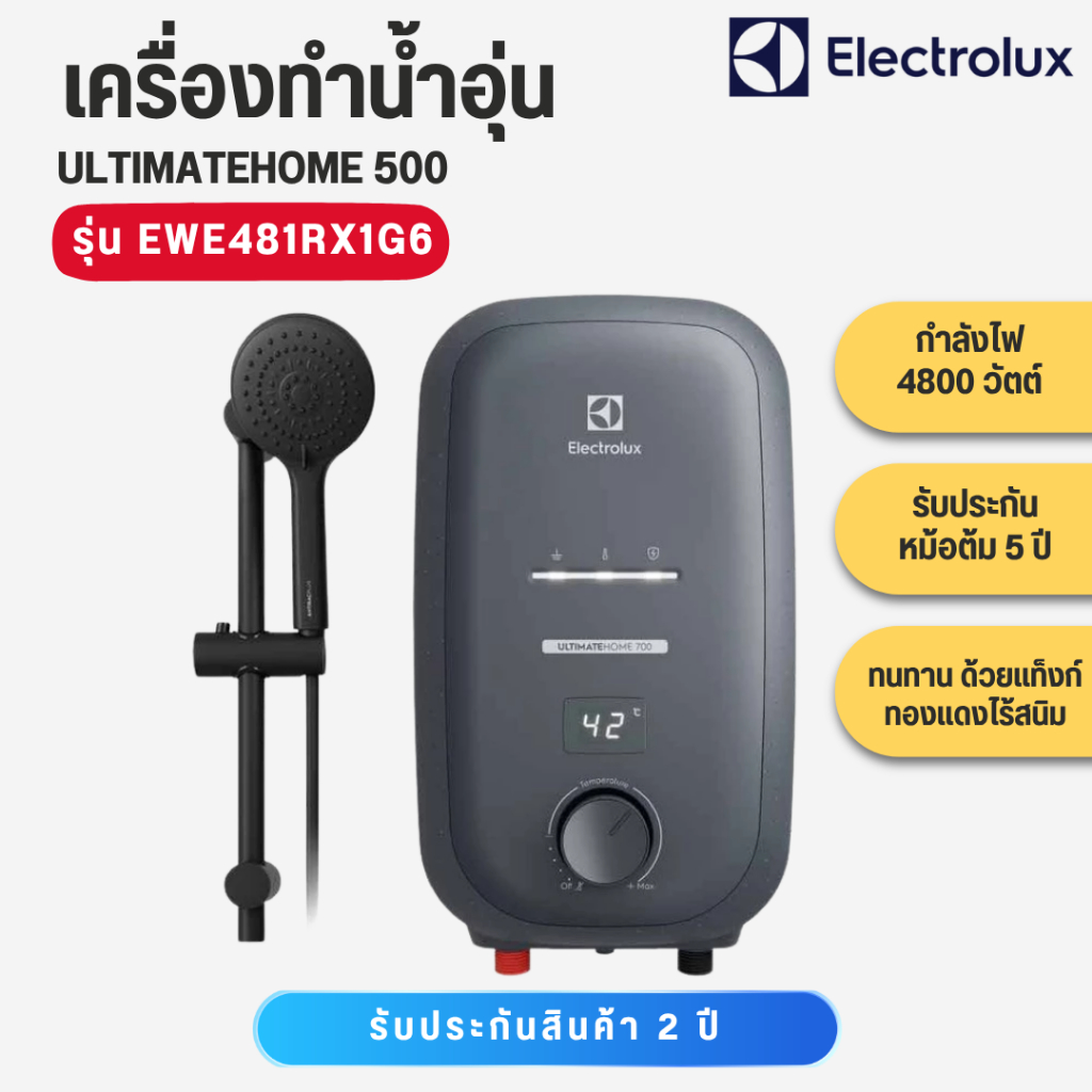 ELECTROLUX เครื่องทำน้ำอุ่น 4800W พร้อมราวสไลด์ สีดำ Series700 รุ่น EWE481RX1G6