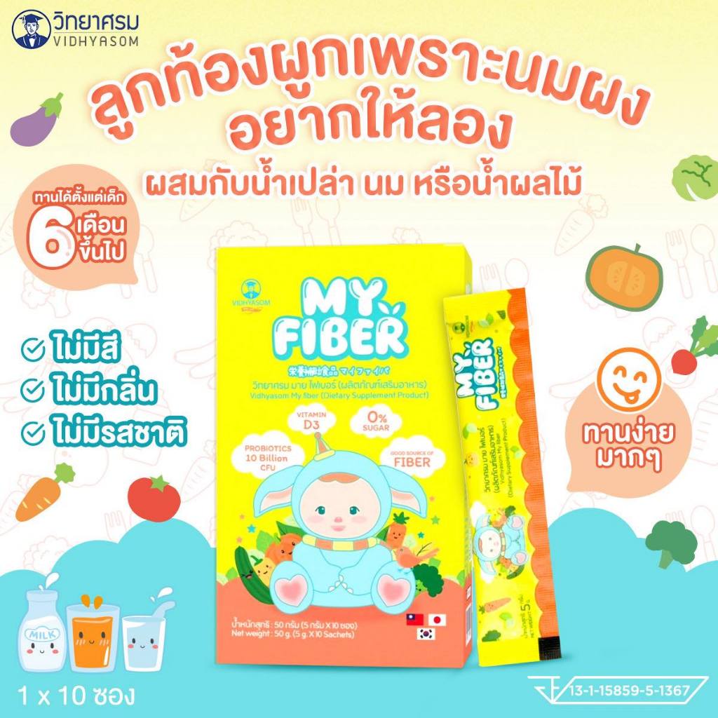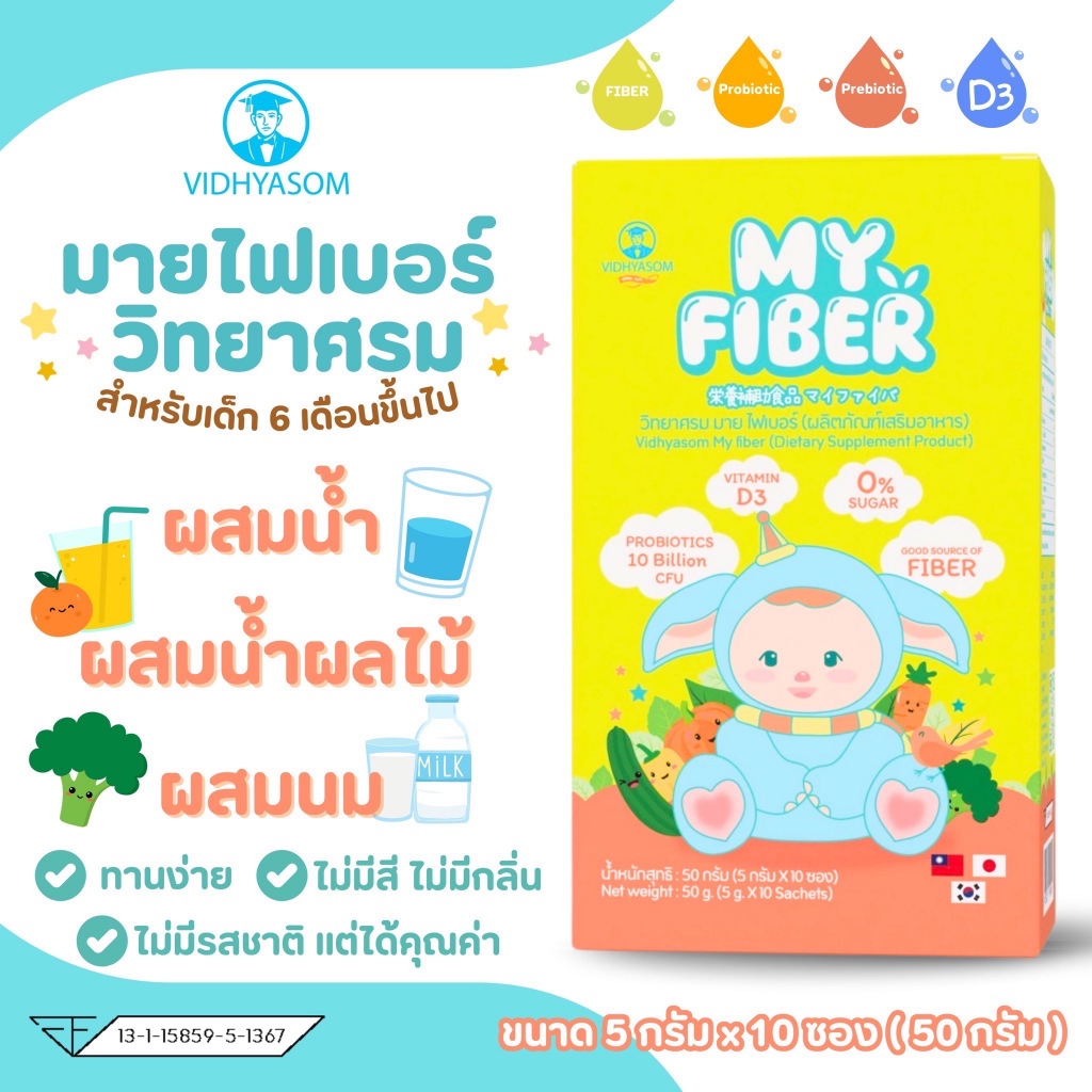 ไฟเบอร์เด็ก วิทยาศรม มา ยไฟเบอร์ MY FIBER อาหารเสริมสำหรับเด็ก 6 เดือนขึ้นไป ไฟเบอร์ พรีไบโอติก โพรไบโอติก