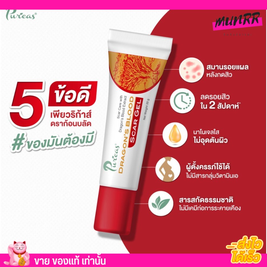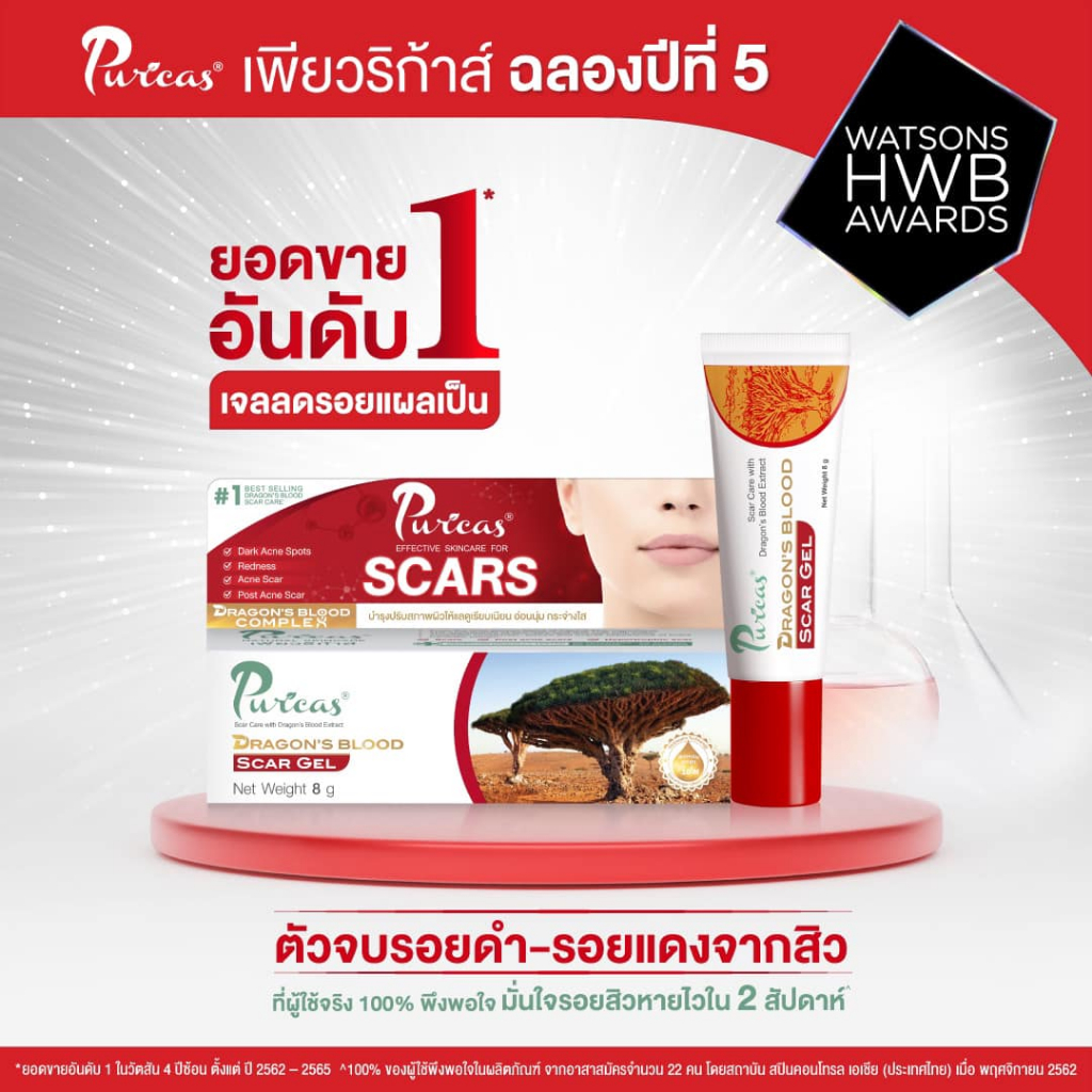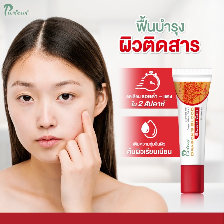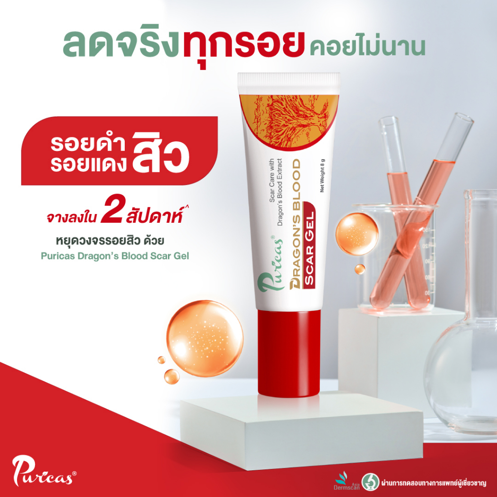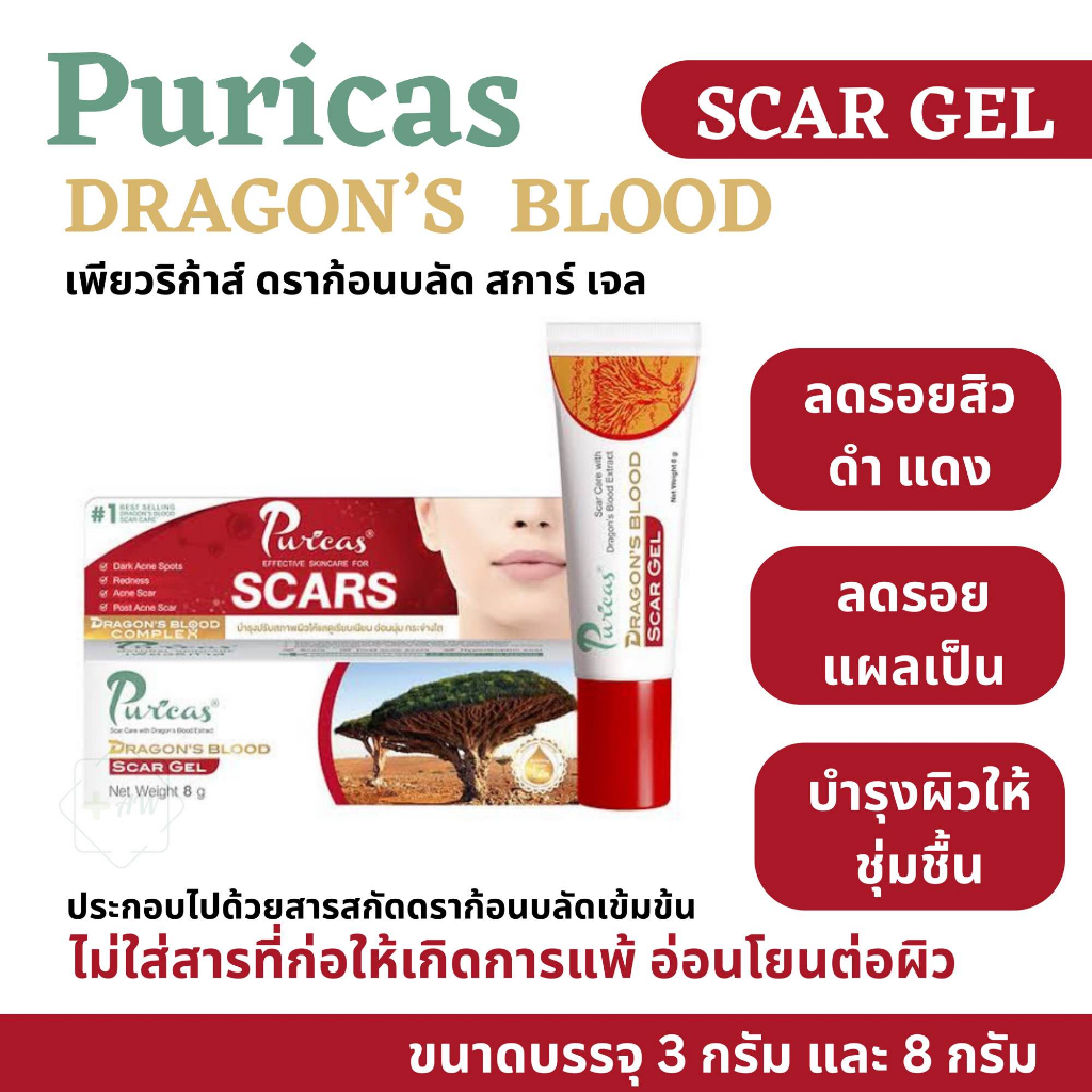 Puricas Dragon's Blood Scar Gel เพียวริก้า ดราก้อนส์ บลัด สการ์ เจล ลดรอยแผลเป็น ลดรอยสิว 8g.