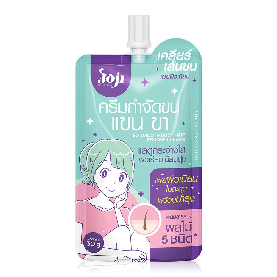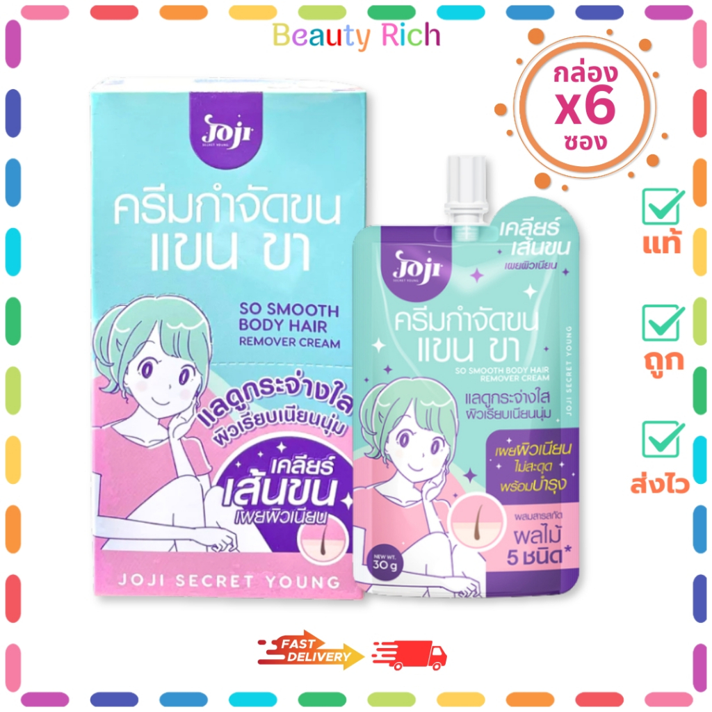(กล่อง 6 ซอง) Joji So Smooth Body Hair Remover Cream (สีฟ้า) ครีมกำจัดขนแขน ขา (ปริมาณ 30 กรัม)