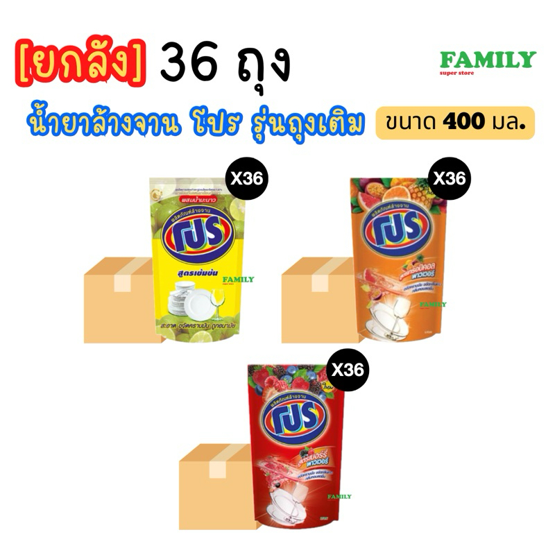 (ยกลัง) โปร น้ำยาล้างจาน (รุ่นถุงเติม) ขนาด 400มล x 36 ถุง