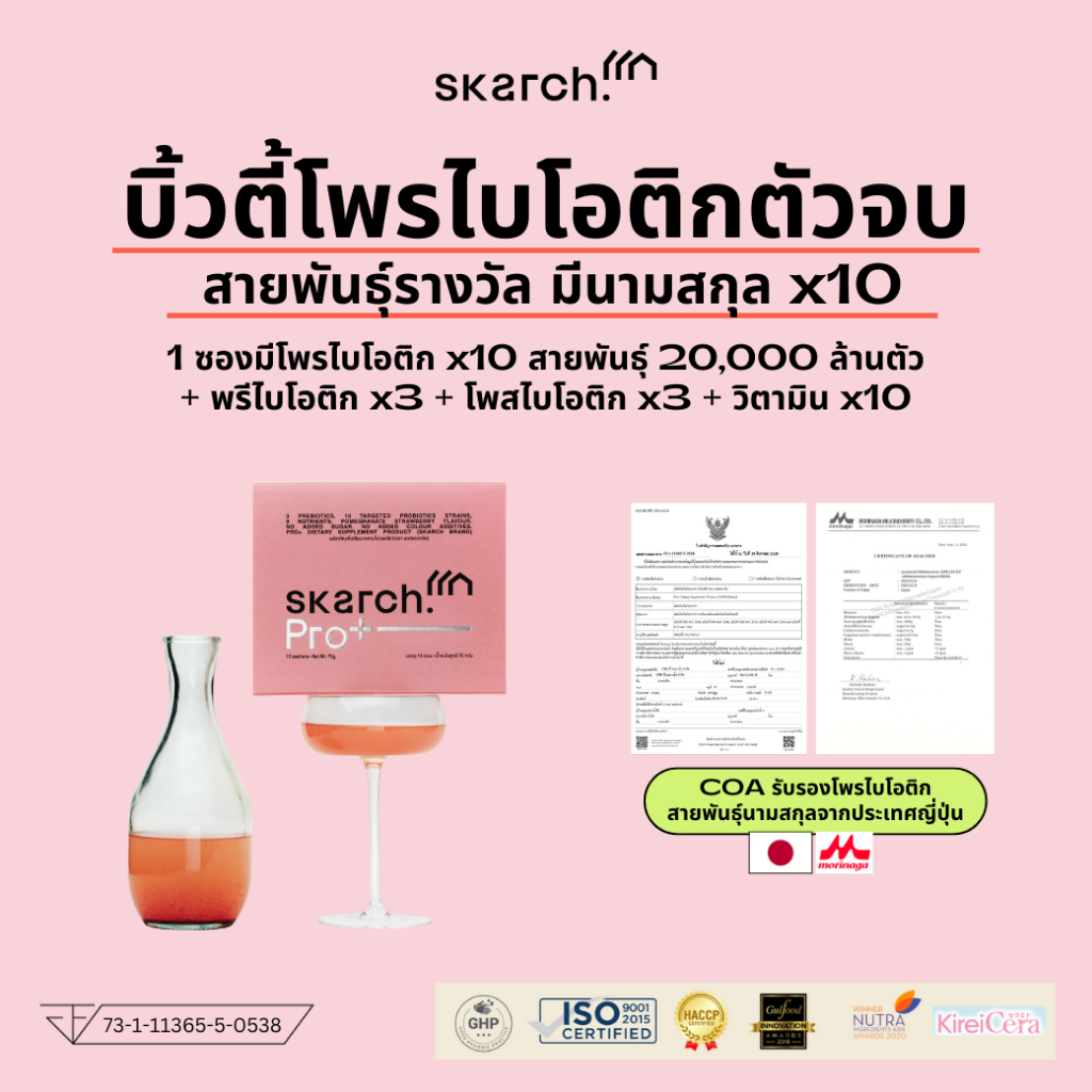 SKARCH PRO+ โพรไบโอติก TM ลดสิว ปรับสมดุล ลำไส้ดี ย่อยอาหาร | Probiotic เสริ มภูมิคุ้มกัน | 15 วัน