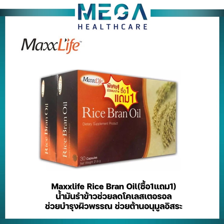 MaxxLife Rice Bran Oil (ซื้อ1แถม1) 30แคปซูล แม็กไลฟ์ น้ำมันรำข้าวช่วยลดโคเลสเตอรอล ช่วยบำรุงผิวพรรณ ช่วยต้านอนุมูลอิสระ
