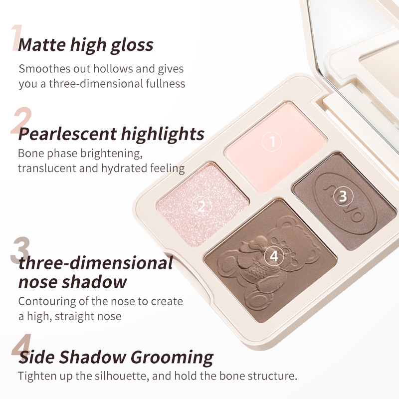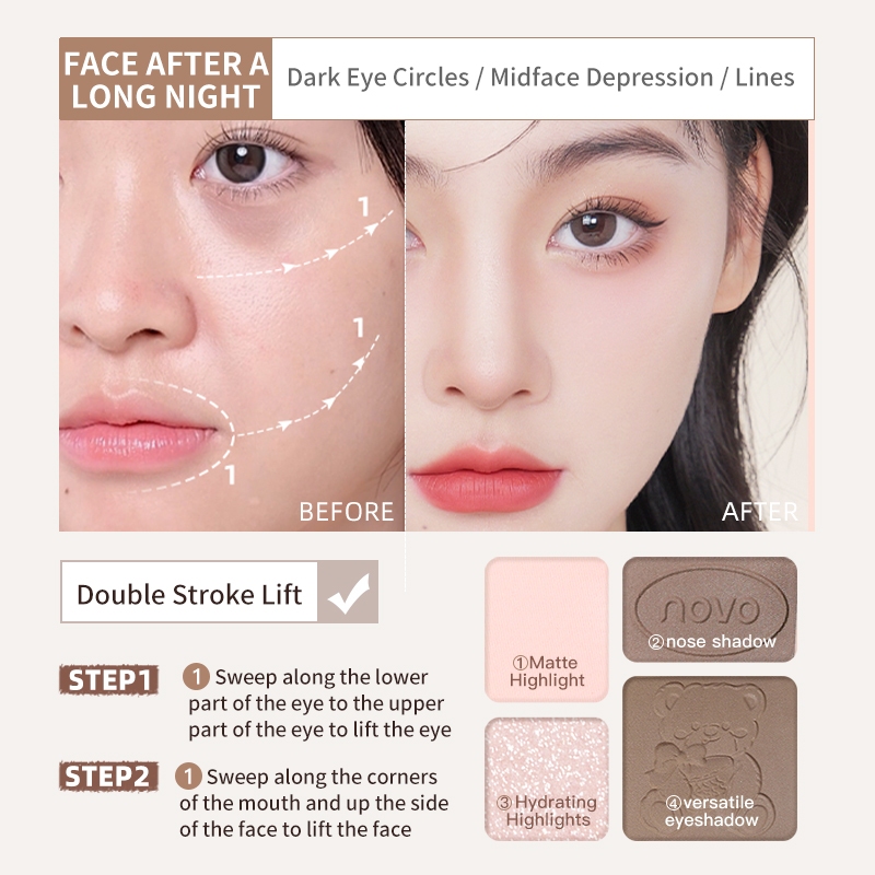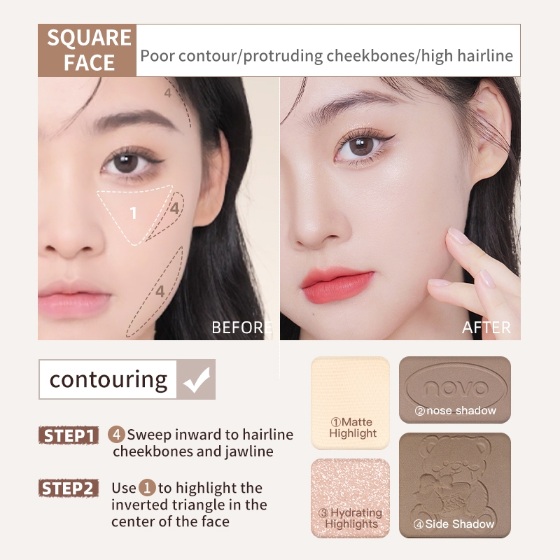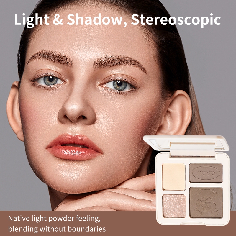 6232 修容 (ใหม่/แท้) NOVO เฉดดิ้งและไฮไลท์ คอนทัวร์หน้าเรียว แบบตลับ 4 สี กันน้ำ ติดทน