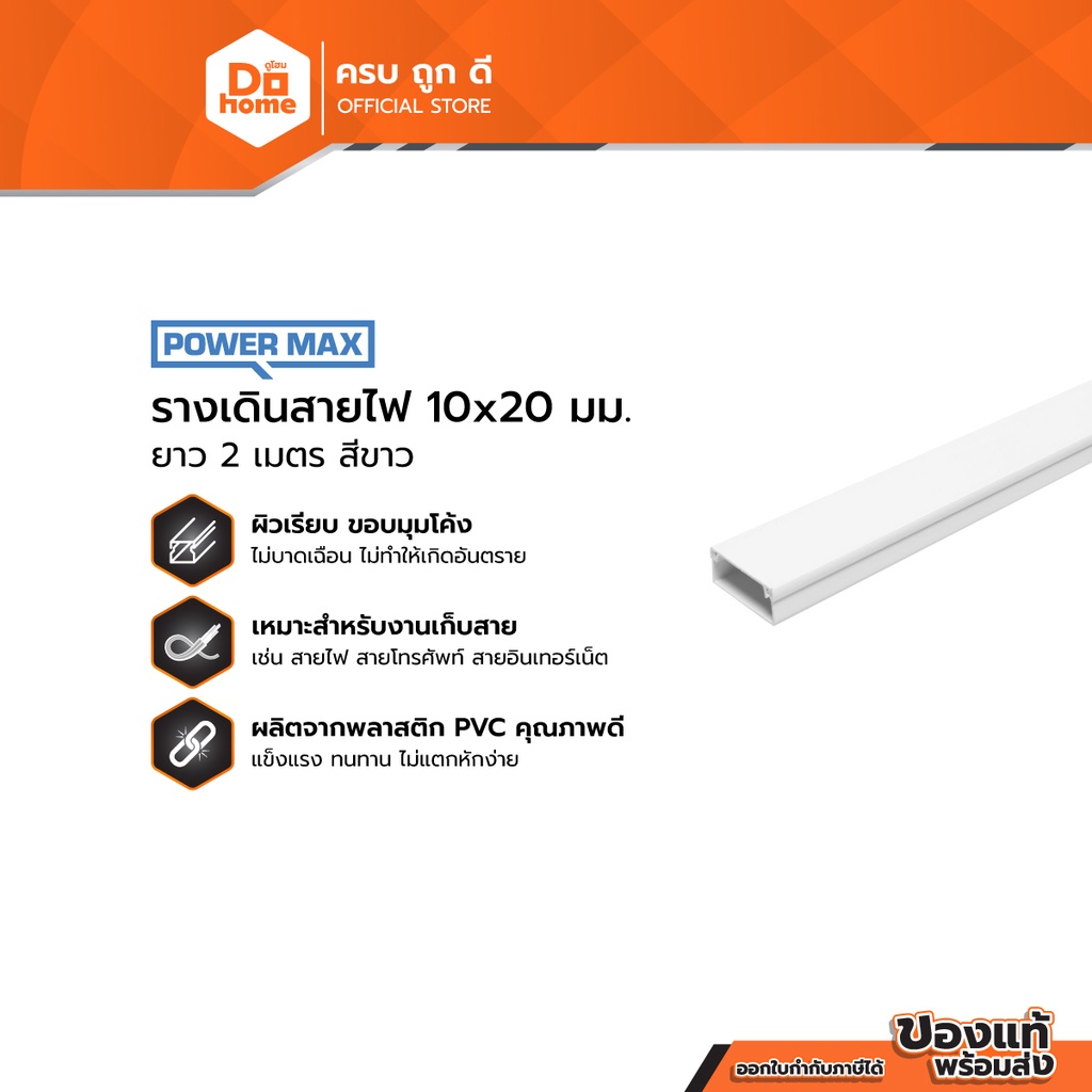 POWER MAX รางเดินสายไฟ 10x20 มม. ยาว 2 ม. สีขาว |SEN|