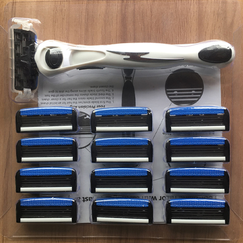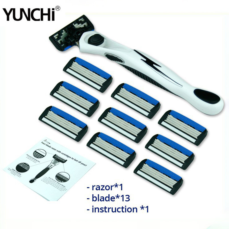 หยุนชิ มีดโกนคู่มือเครื่องโกนหนวดเปลี่ยนใบมีด 4 ชั้นมีดโกนโกนหนวดพร้อมตลับ 1 ผู้ถือ 13 ใบมีด