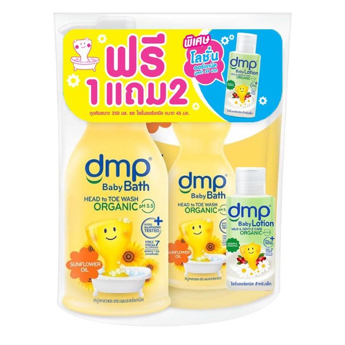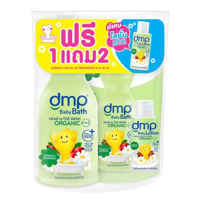 DMP ดีเอ็มพี คิดส์ 3in1 สบู่เหลวอาบน้ำเด็ก อาบน้ำและสระผม สำหรับเด็ก ออแกนิค p.H 5.5 แชมพูเด็ก ครีมอาบน้ำเด็ก