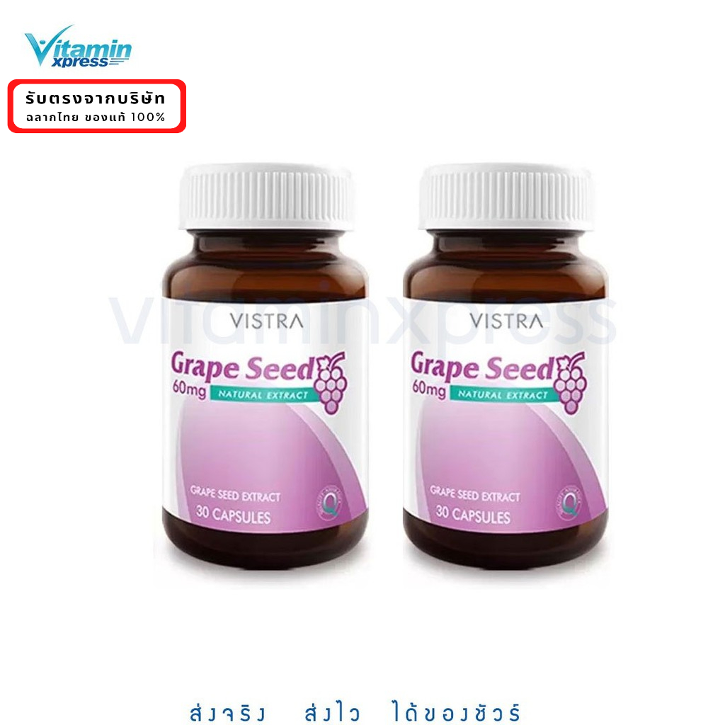 exp.02/27 Vistra Grape Seed 30 เม็ด 2 ขวด. เมล็ดองุ่น ฝ้า กละ จุดด่างดำ