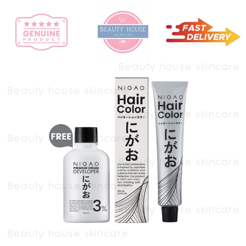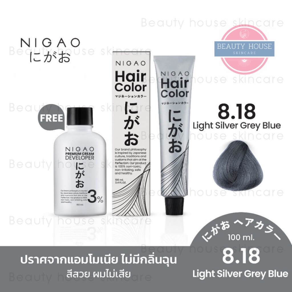 [แถมdeveloper] นิกาโอะ ครีมเปลี่ยนสีผม โทนสีเทาเงิน 100ml | Nigao Hair Color