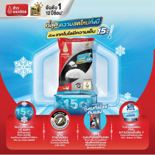 ตราฉัตร ข้าวหอมมะลิใหม่ 100% ขนาด 1 กิโลกรัม หุงสุกแล้วมีกลิ่นหอม นุ่มเหนียว สะอาด ปลอดภัย ใส่ใจทุกขั้นตอนการผลิต