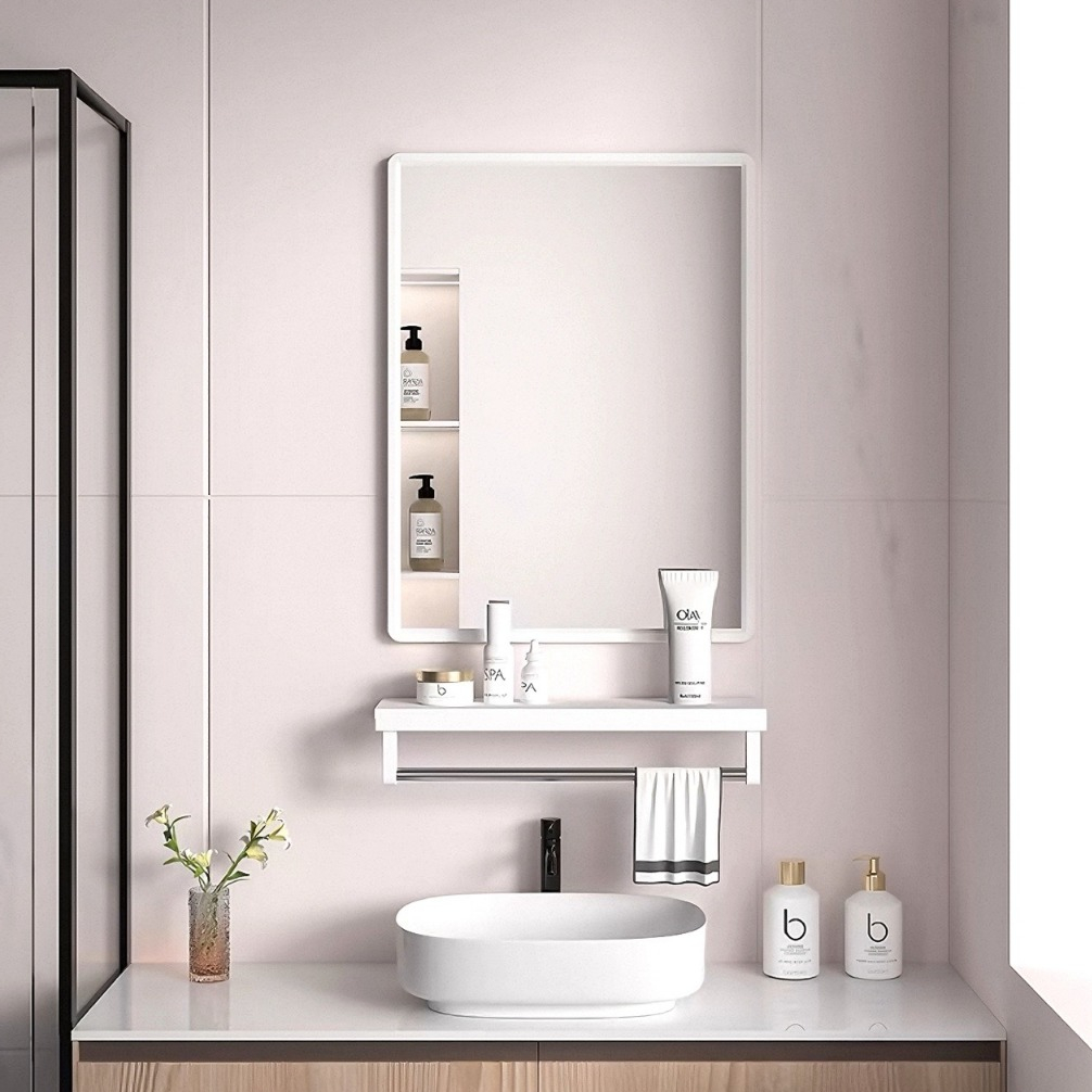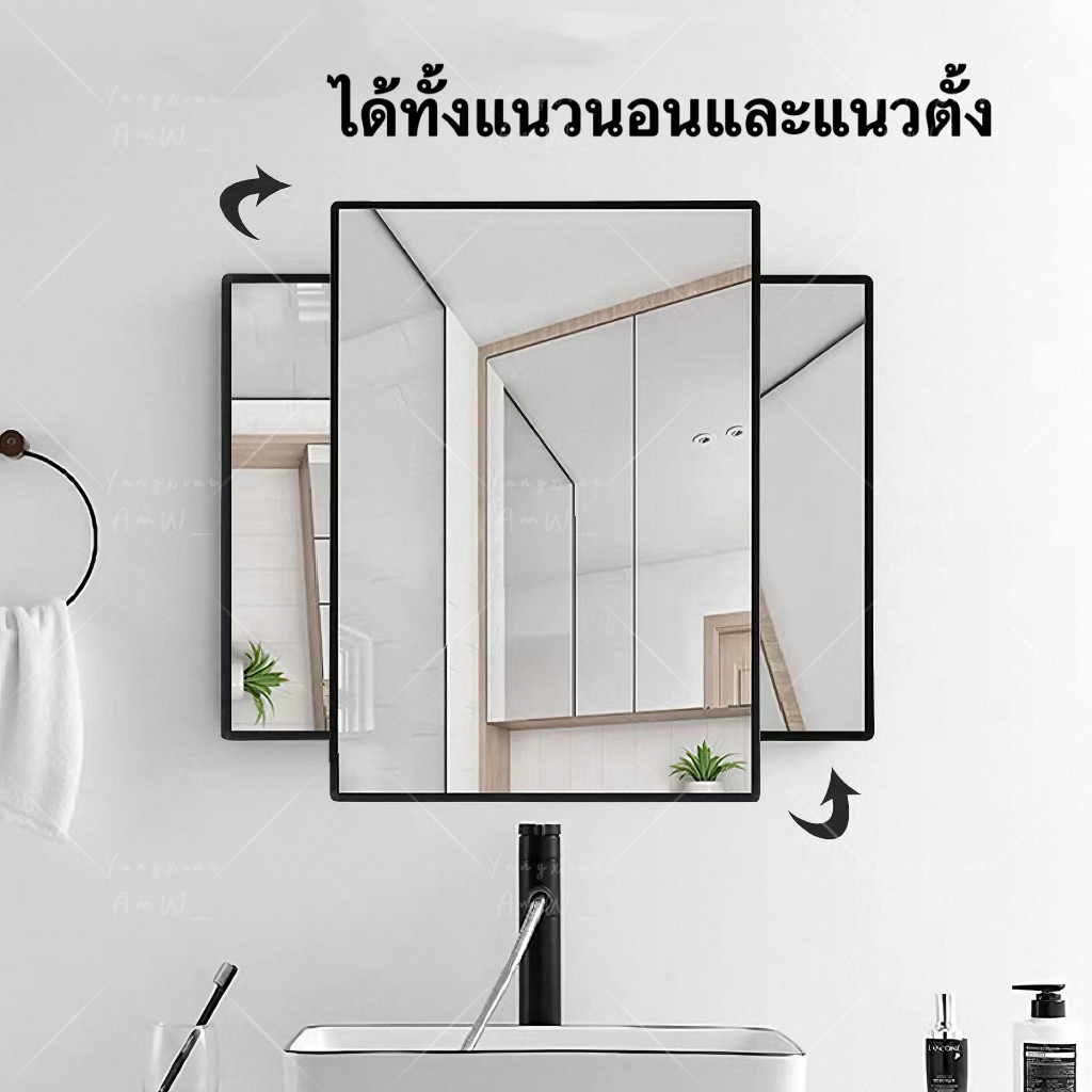 Lucky🐱กระจกแขวน/ติดผนัง กระจกห้องน้ำ แบบสี่เหลี่ยม ภาพคมชัดไม่หลอกตา ติดตั้งได้ทั้งแนวนอนและแนวตั้ง ไม่ต้องเจาะผนัง