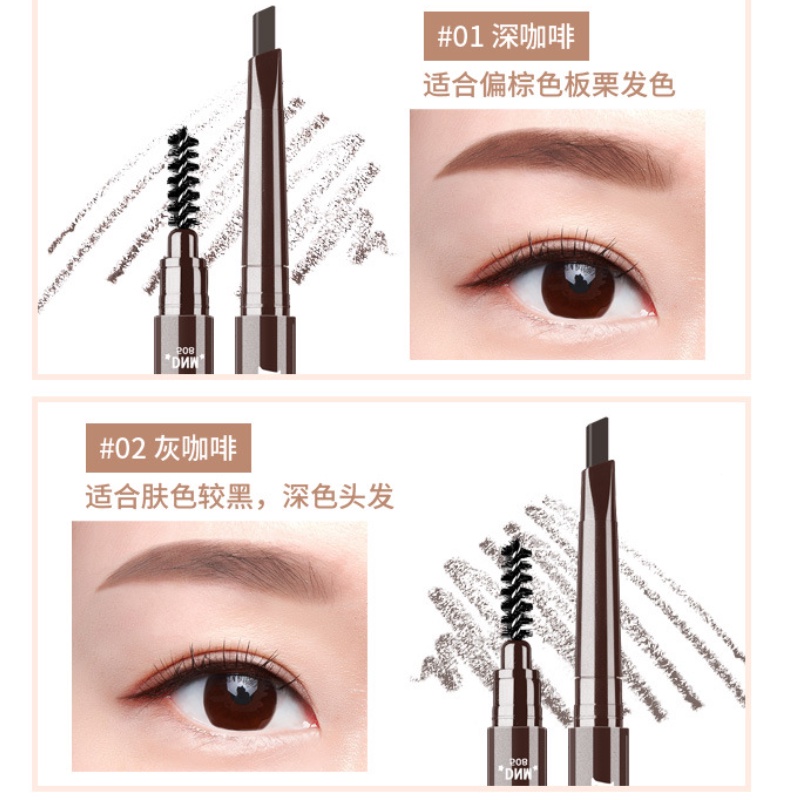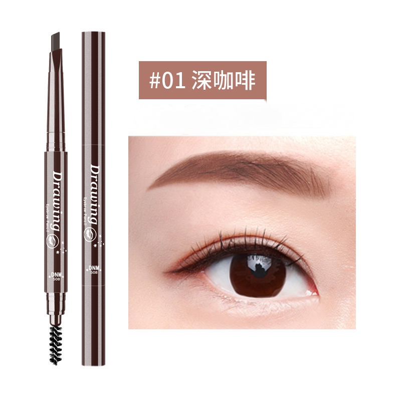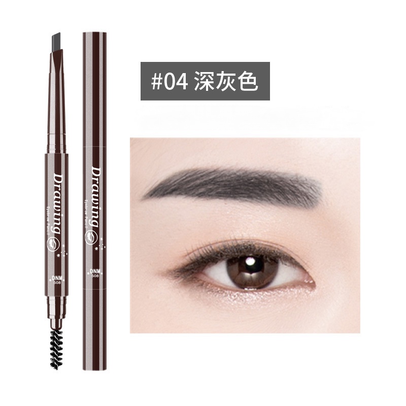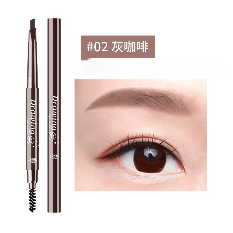 Dnm เครื่องสําอางดินสอเขียนคิ้วแบบสองหัวกันน้ํากันเหงื่อพร้อมแปรง