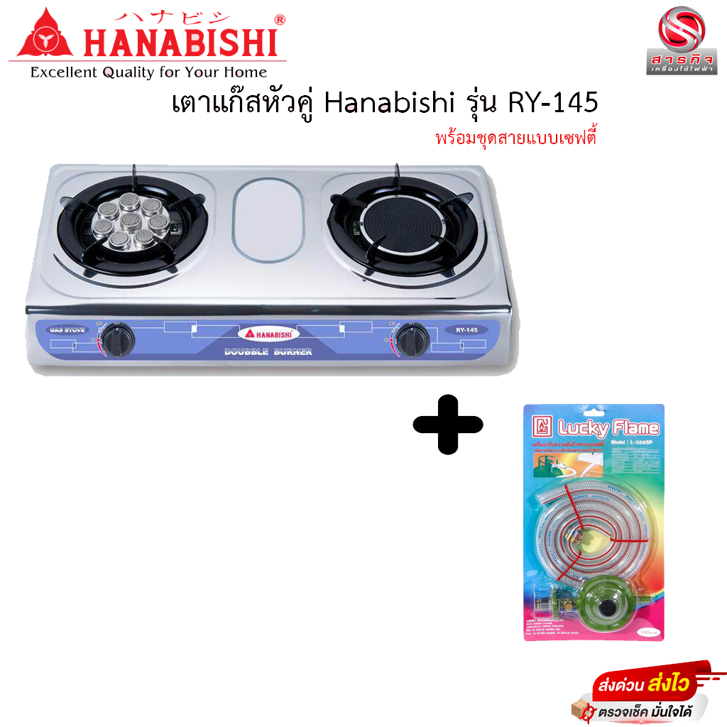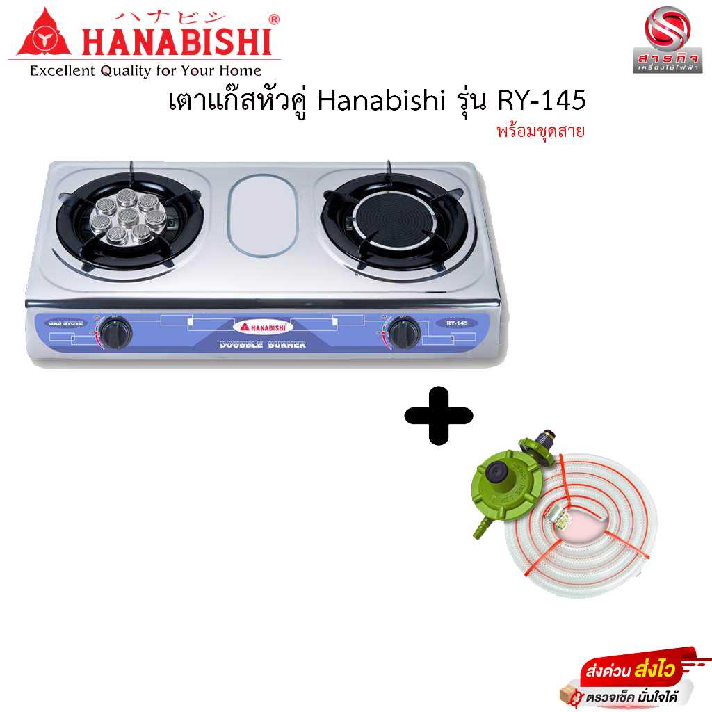 เตาแก๊สฮานาบิชิหัวคู่ Hanabishi หน้าสแตนเลส รุ่น RY-145 รับประกัน 1ปี