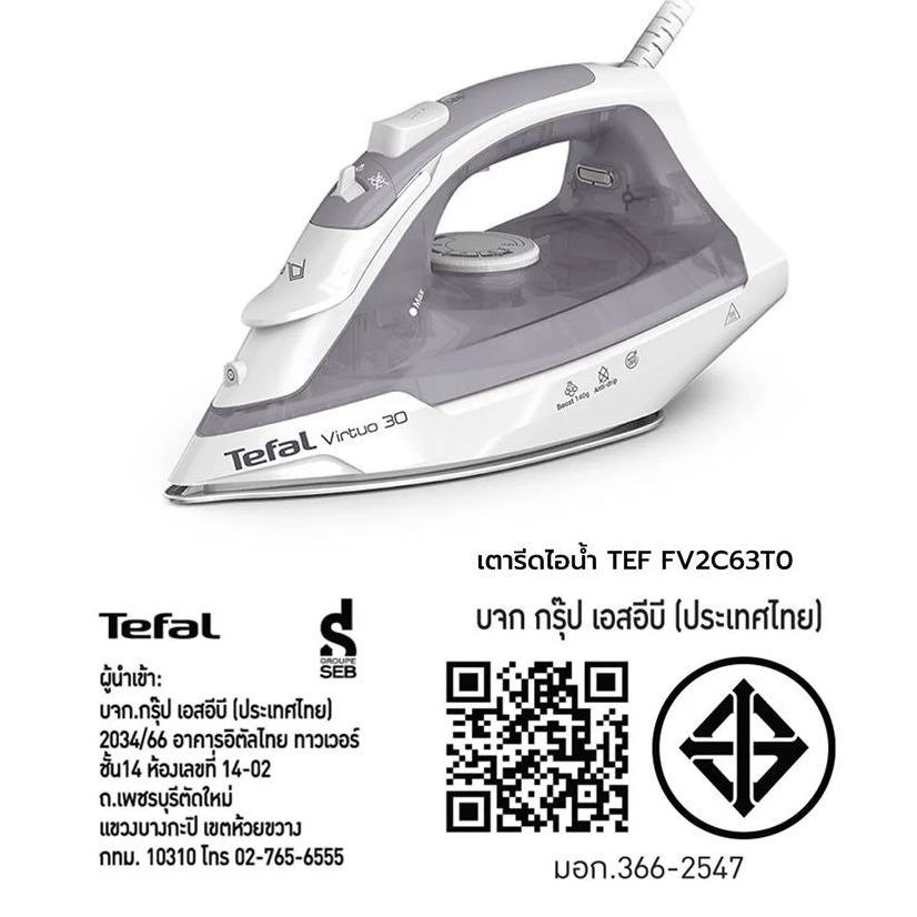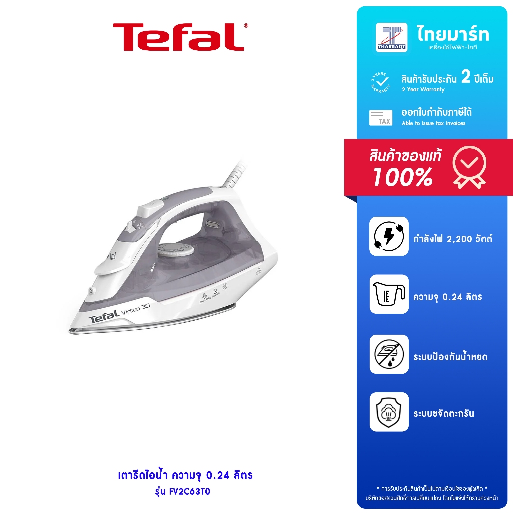 TEFAL เตารีดไอน้ำ Virtuo 30 รุ่น FV2C63T0 ความจุ 0.24 ลิตร กำลังไฟ 2,000 วัตต์ รับประกันสินค้า 2 ปี