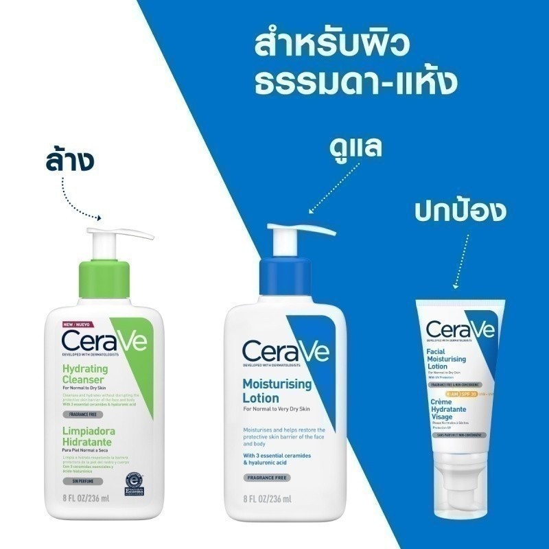 เซราวี CERAVE Moisturising Lotion มอยเจอร์ไรซิ่ง โลชั่นบำรุงผิว เนื้อสัมผัสบางเบา 236ml. สำหรับผิวธรรมดา ผิวมัน ผิวผสม