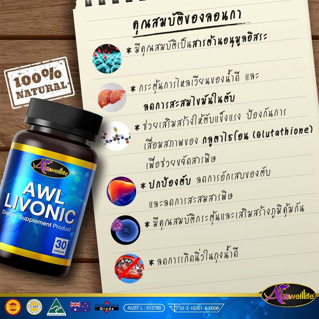 Auswelllife AWL Livonic ขับสารพิษออกจากร่างกาย (1 ขวด 30 แคปซูล)