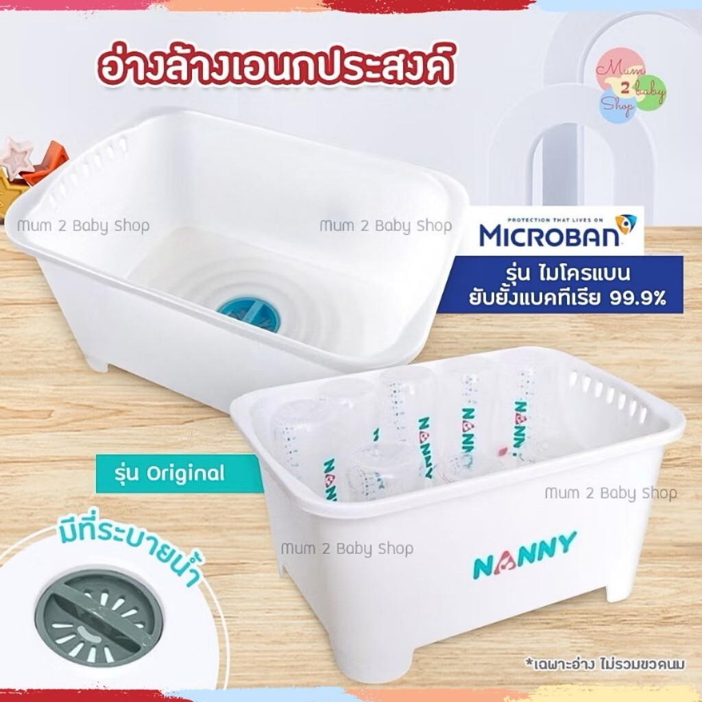 NANNY แนนนี่ อ่างล้างเอนกประสงค์ อ่างล้างขวดนม มีรูระบายน้ำ