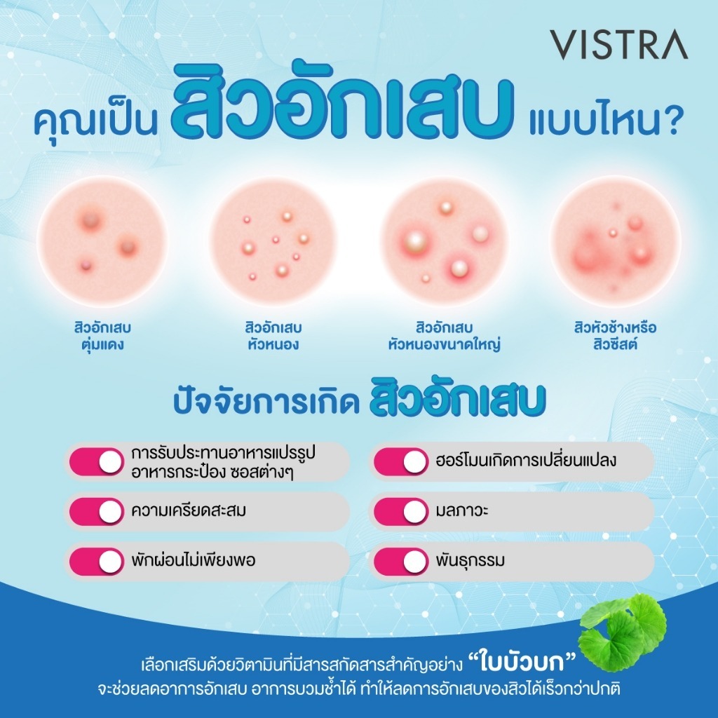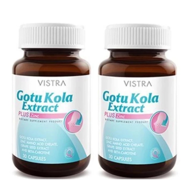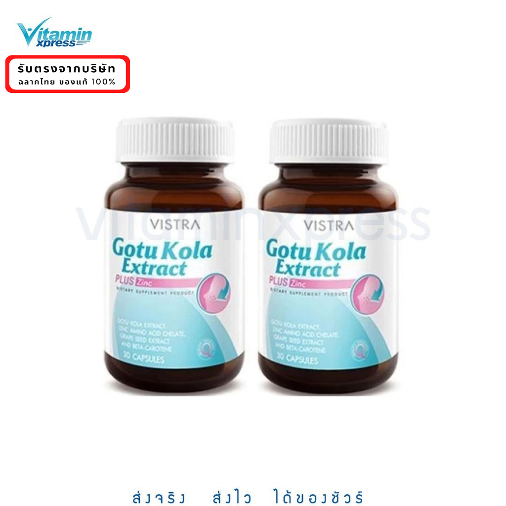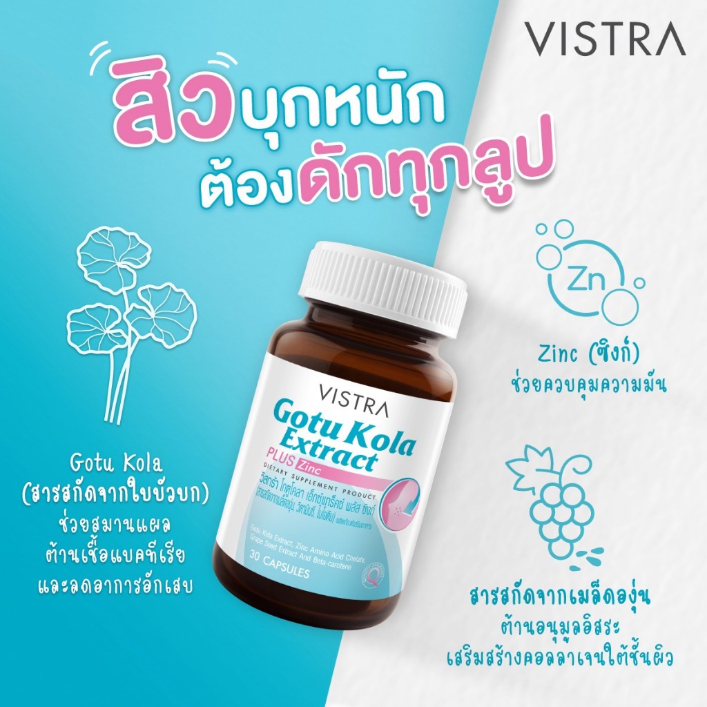Vistra Gotu Kola Extract Plus Zinc 30เม็ด วิสทร้า โกตู พลัส ซิงค์ 2 ขวด สิวผด สังกะสี ปัญหาสิว