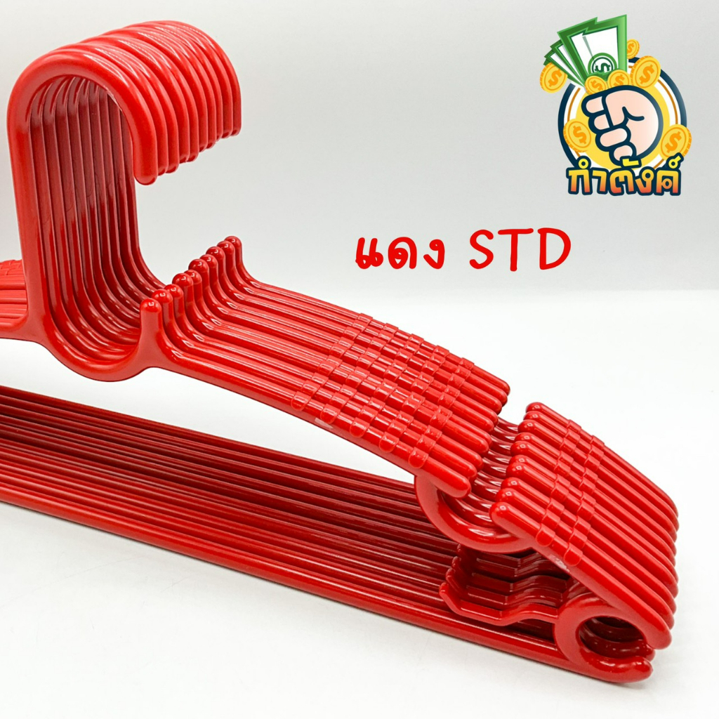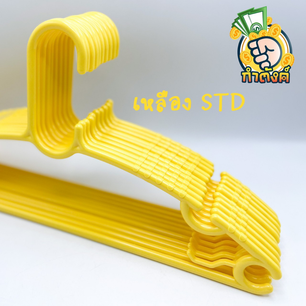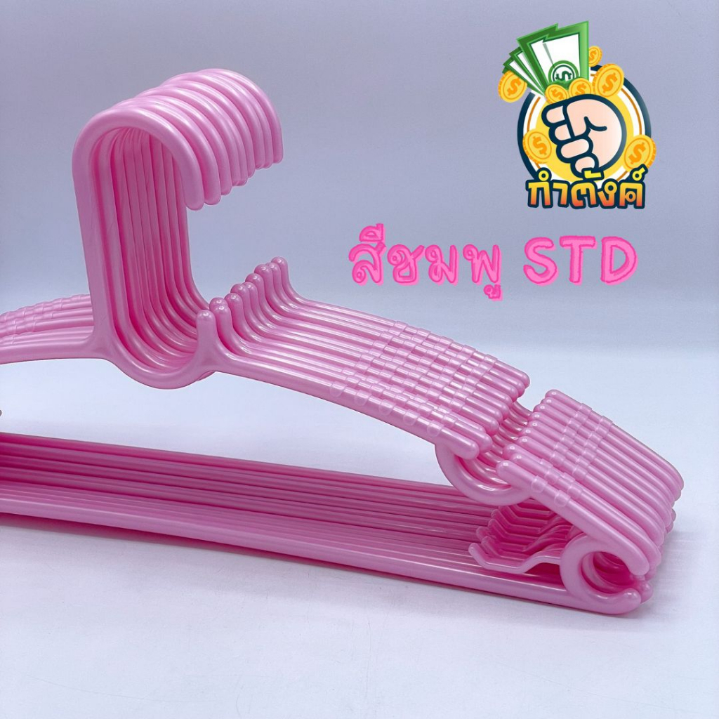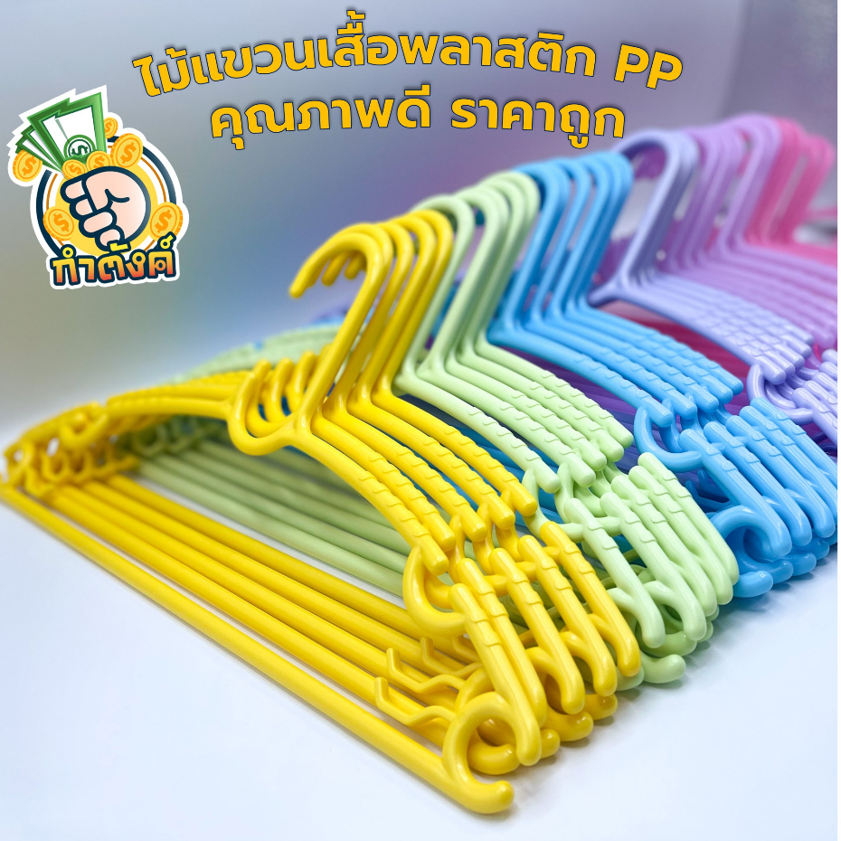 H10 ✨ไม้แขวนเสื้อ พลาสติกหลากสี หนาพิเศษ แพ็ค 10 ชิ้น ✨ by กำตังค์