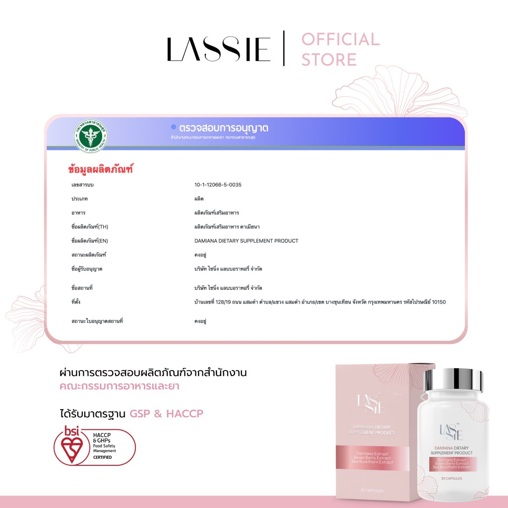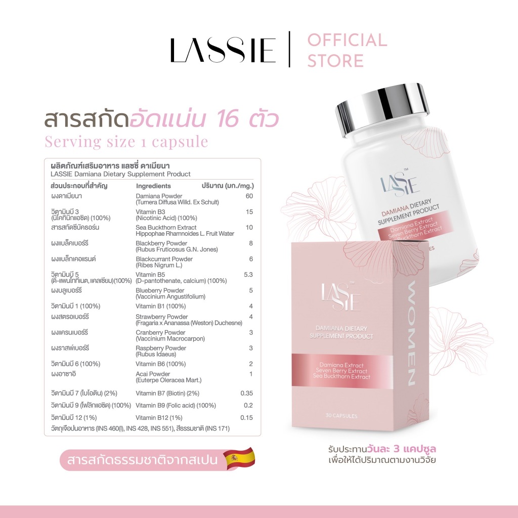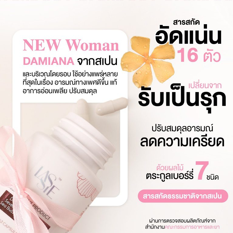 [ฟรี! ของแถม] LASSIE Damiana Dietary Supplement NEW WOMEN อาหารเสริมผู้หญิง ช่วยเสริมสมดุลฮอร์โมน 42 แคปซูล
